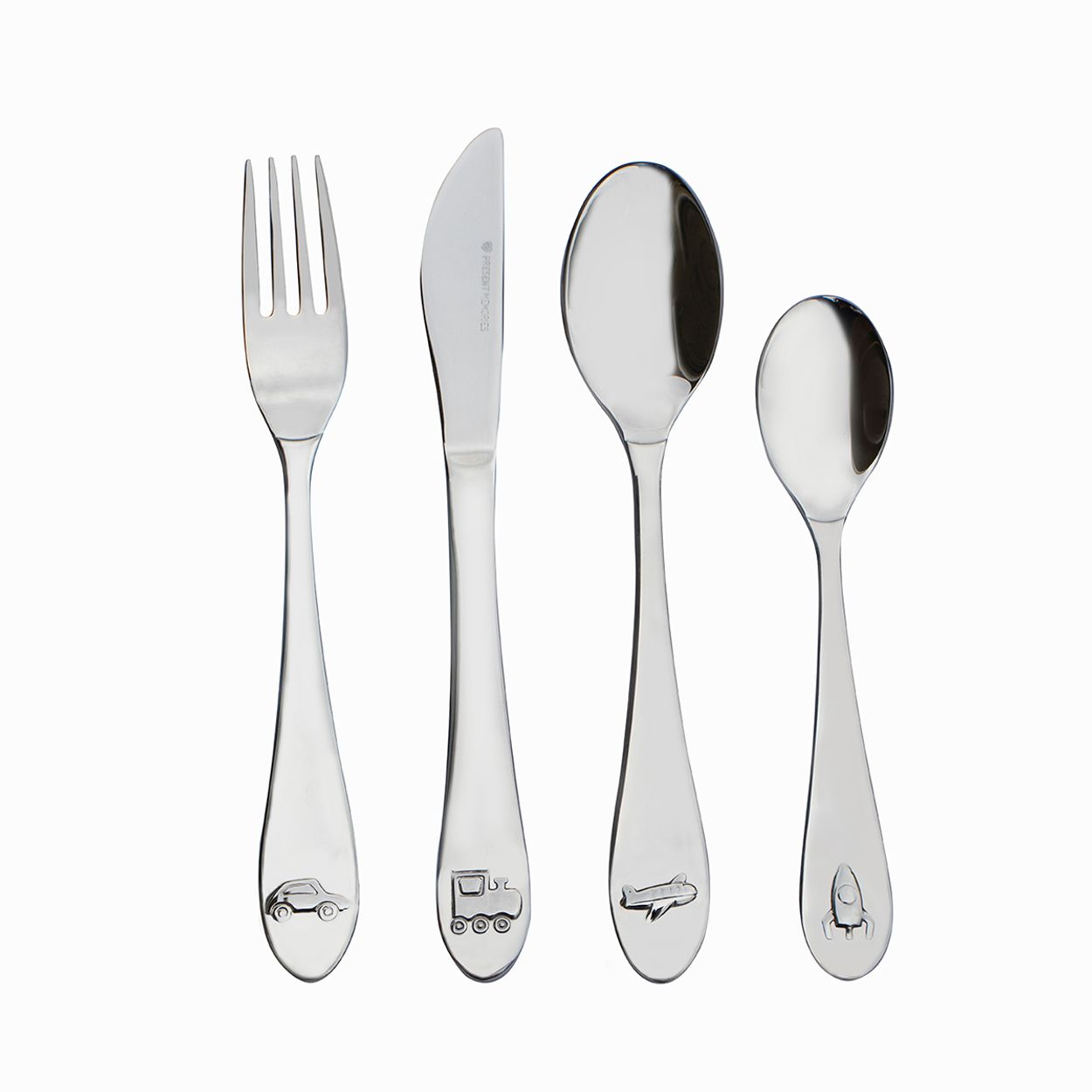 Dit 4-delige bestekset heeft het thema reizen. Op de bestekonderdelen staan dan ook de auto, trein, vliegtuig en raket. Omdat het bestek is vervaardigd uit 18/10 RVS kan het in de vaatwasser. De bestekonderdelen kunnen worden gegraveerd. Leuk als geboorte-, doop- of verjaardagscadeau. U kunt één naam gratis laten graveren. De vork en de lepels zullen aan de achterzijde gegraveerd worden. De gravure kunt u vermelden in het opmerkingenveld tijdens het bestelproces. Gegraveerde artikelen kunnen niet worden geruild. Afmeting: vork: 172mm, mes: 190mm, eetlepel: 170mm, dessertlepel: 140mm.