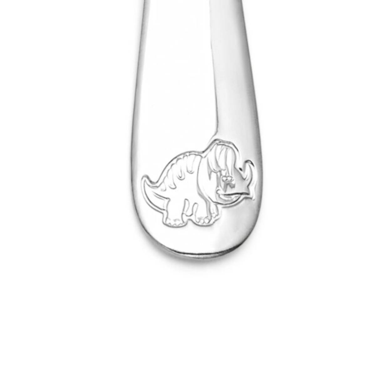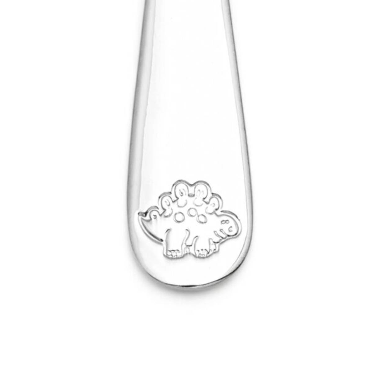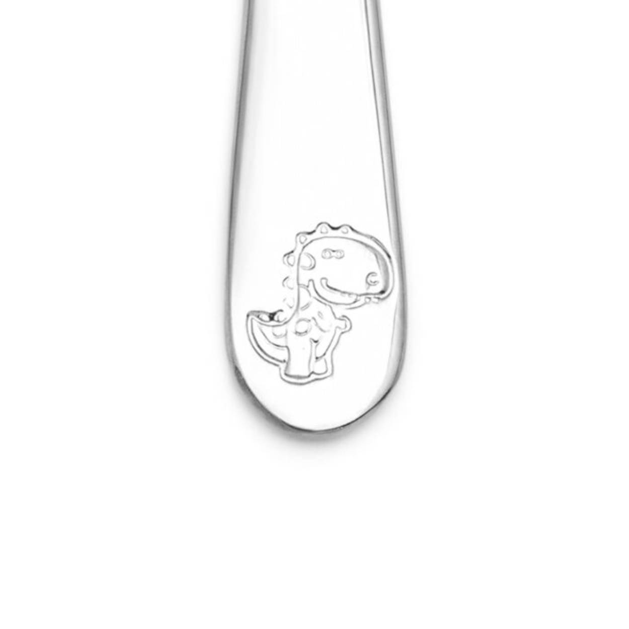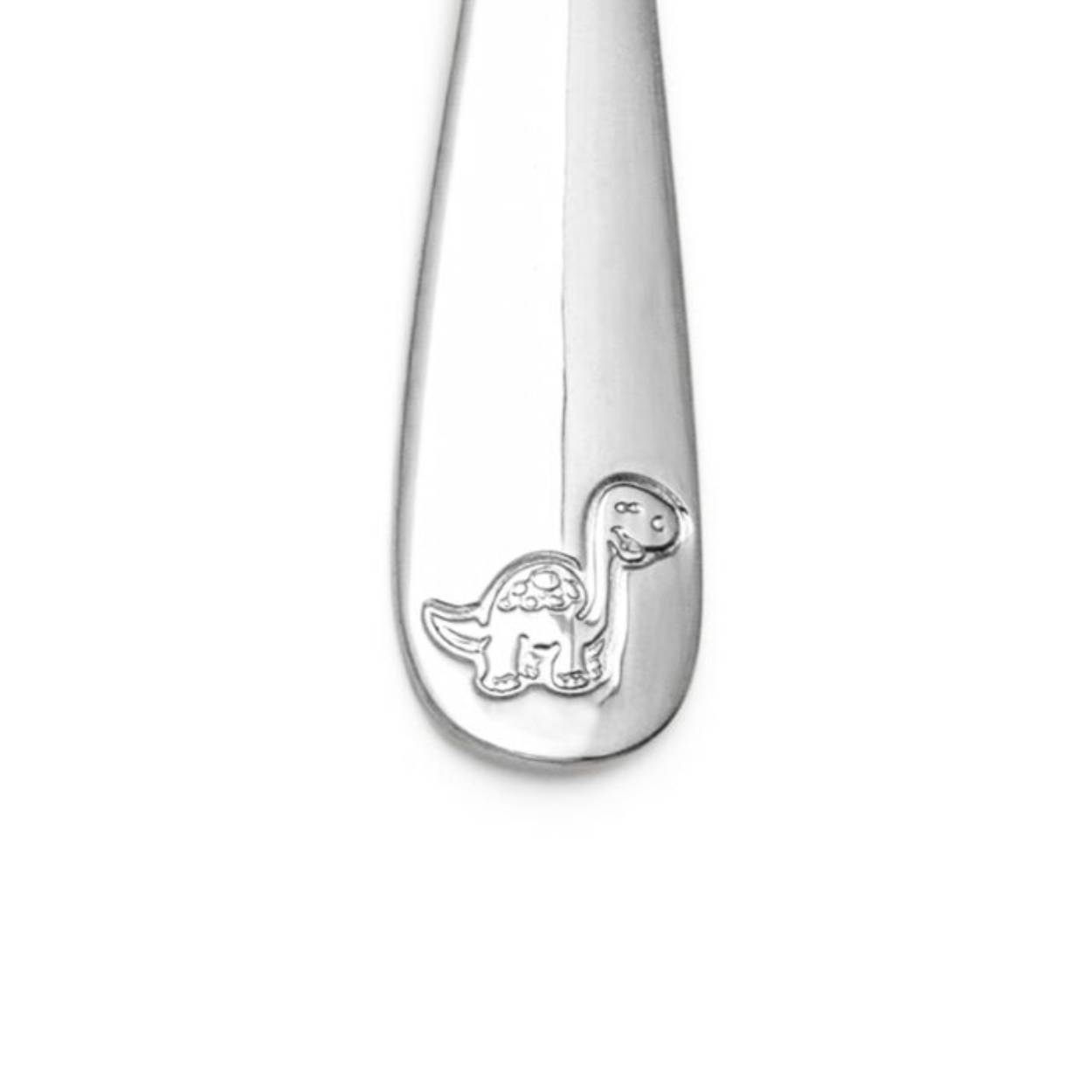 Kinderbestek met afbeeldingen van dinosaurussen. De set is vaatwasmachinebestendig en bestaat uit een vork, mes, lepel en paplepeltje. De eerste hapjes waren nog nooit zo leuk !Verpakt in een mooie geschenkverpakking. Omdat het bestek is vervaardigd uit edelstaal kan het in de vaatwasser. Leuk als geboorte-, doop- of verjaardagscadeau. U kunt één naam gratis laten graveren. De vork en de lepels zullen aan de achterzijde gegraveerd worden. De gravure kunt u vermelden in het opmerkingenveld tijdens het bestelproces. Gegraveerde artikelen kunnen niet worden geruild