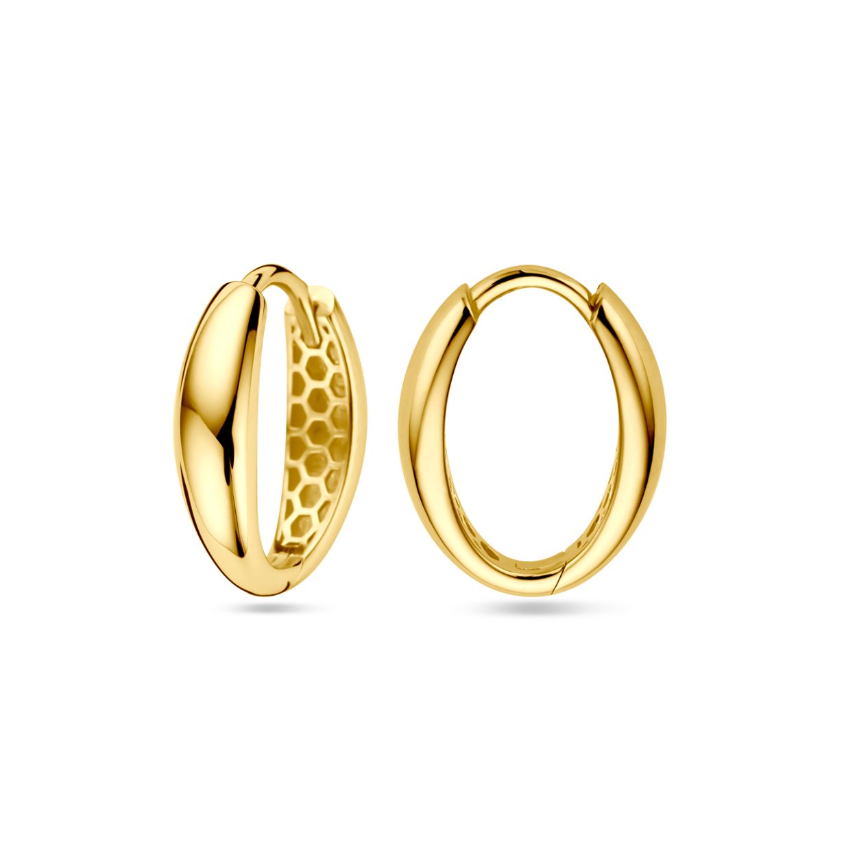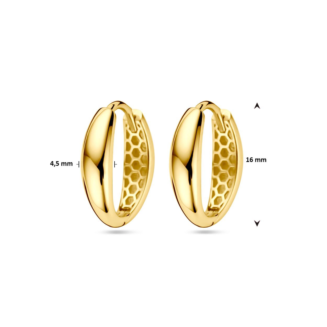 Huiscollectie 14krt geelgouden klapoorringen. De oorringen hebben een totale hoogte van 16mm.