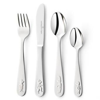 Op de vork een afbeelding van Kikker zelf, Varkentje op het mes, Haas op de lepel en Beer op de dessertlepel.  Omdat het bestek is vervaardigd uit edelstaal kan het in de vaatwasser. De bestekonderdelen zijn geschikt om te worden gegraveerd. Leuk als kraam- of verjaardagscadeau. De bestekset wordt geleverd in een bijpassende geschenkverpakking. Afmeting: vork: 15 cm, mes: 17 cm, eetlepel: 15 cm, dessertlepel: 13 cm. U kunt één naam gratis laten graveren. De vork en de lepels zullen aan de achterzijde gegraveerd worden. De gravure kunt u vermelden in het opmerkingenveld tijdens het bestelproces. Gegraveerde artikelen kunnen niet worden geruild.