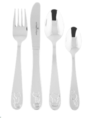 Op de bestekdelen worden vrolijke reliëfafbeeldingen van Pim en Pom getoond.. Omdat het bestek is vervaardigd uit edelstaal kan het in de vaatwasser.  Dit kinderbestek bevat een bijpassende geschenkverpakking, welke cadeau gegeven kan worden bij een geboorte, verjaardag, doop of andere gelegenheid. U kunt één naam gratis laten graveren. De vork en de lepels zullen aan de achterzijde gegraveerd worden. De gravure kunt u vermelden in het opmerkingenveld tijdens het bestelproces. Gegraveerde artikelen kunnen niet worden geruild.