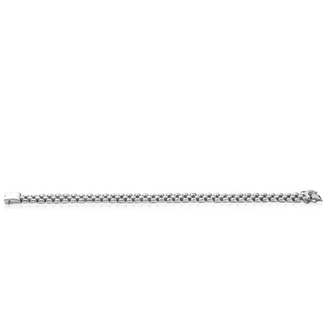 ZINZI zilveren schakel armband van 9mm breed met drie rondvormige schakelbanen. Deze armband valt soepel rond de pols en heeft een luxe sluiting. Exclusief ontworpen door mode-ontwerper Mart Visser en draagt herkenbaar zijn signatuur. Vervaardigd van eerste gehalte zilver (925) en met extra rodiumlaag voor een langdurige glans. Maak de set compleet met het bijpassende collier, oorringen en ring.