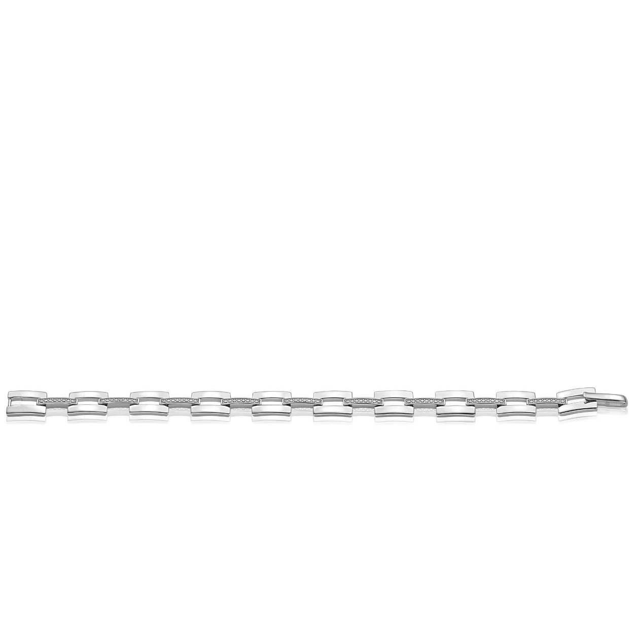 ZINZI zilveren schakelarmband met rechthoekige schakels en schitterende verbindingsstukjes, bezet met witte zirkonia's. De armband is 9mm breed en is exclusief ontworpen door Mart Visser. Deze armband draagt herkenbaar de signatuur van Mart Visser. Vervaardigd van eerste gehalte zilver (925) en met extra rodiumlaag voor een langdurige glans.