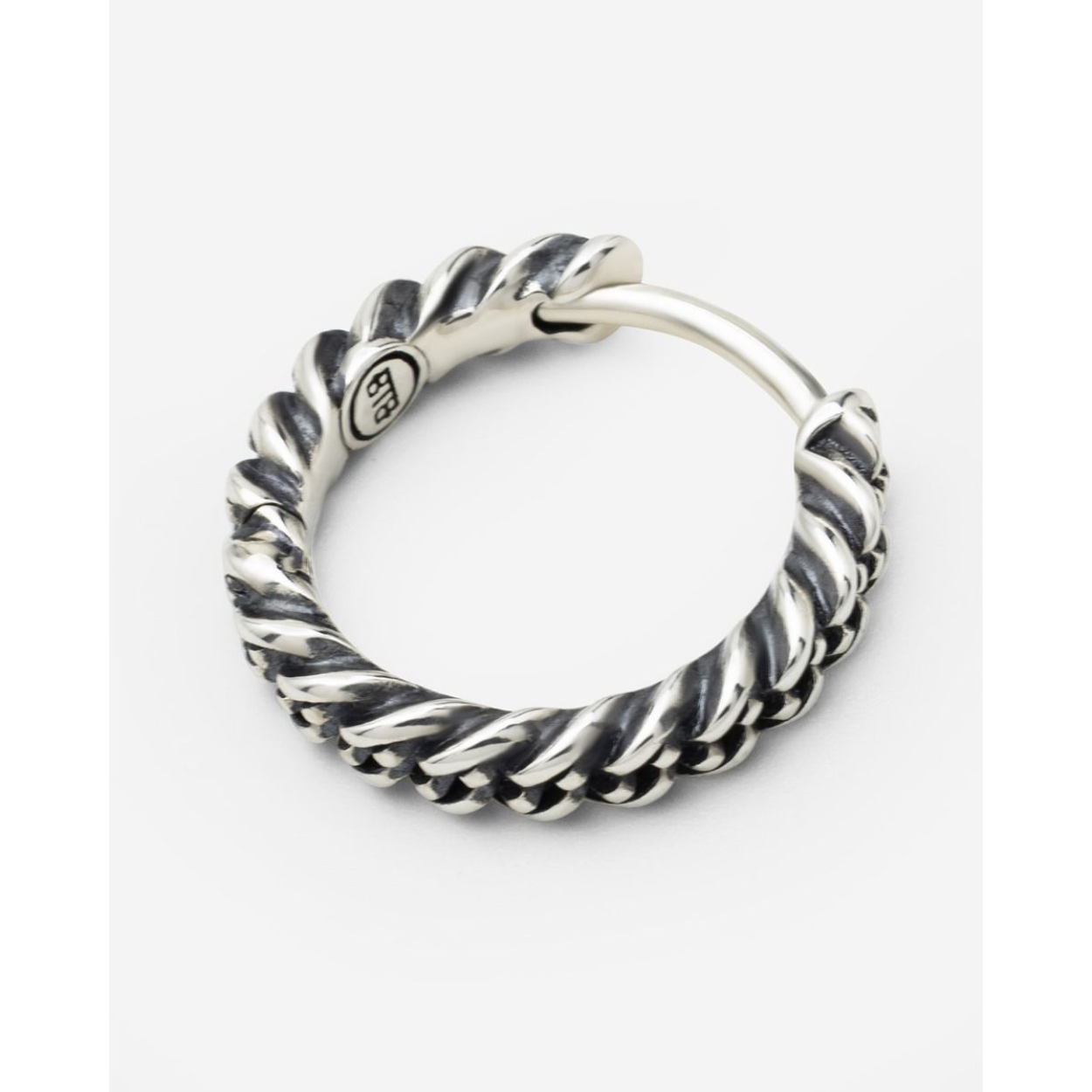Minimalistisch met een edgy randje – de Zilveren Nathalie Hoop is een verfijnde oorbel in de iconische Nathalie schakel. Met een diameter van 14mm is deze hoop nét iets groter, perfect om als statement piece te dragen of te combineren in een earparty. De herkenbare, stoere schakel geeft deze oorbel karakter zonder zijn elegantie te verliezen. Ontworpen in Amsterdam en handgemaakt in Zuid-Oost Azië van gerecycled zilver. Let op: dit is een single piece – mix, match en maak ’m eigen.