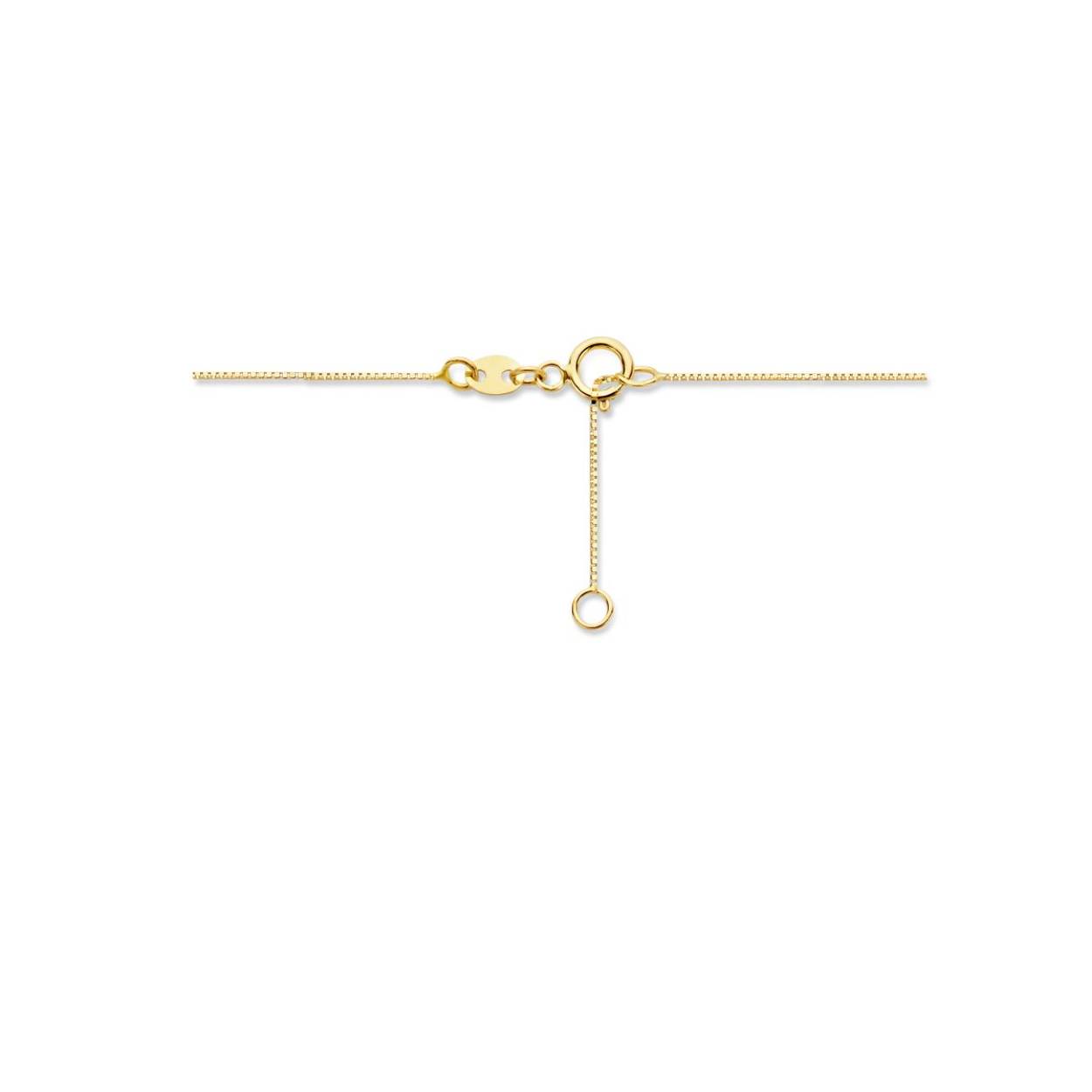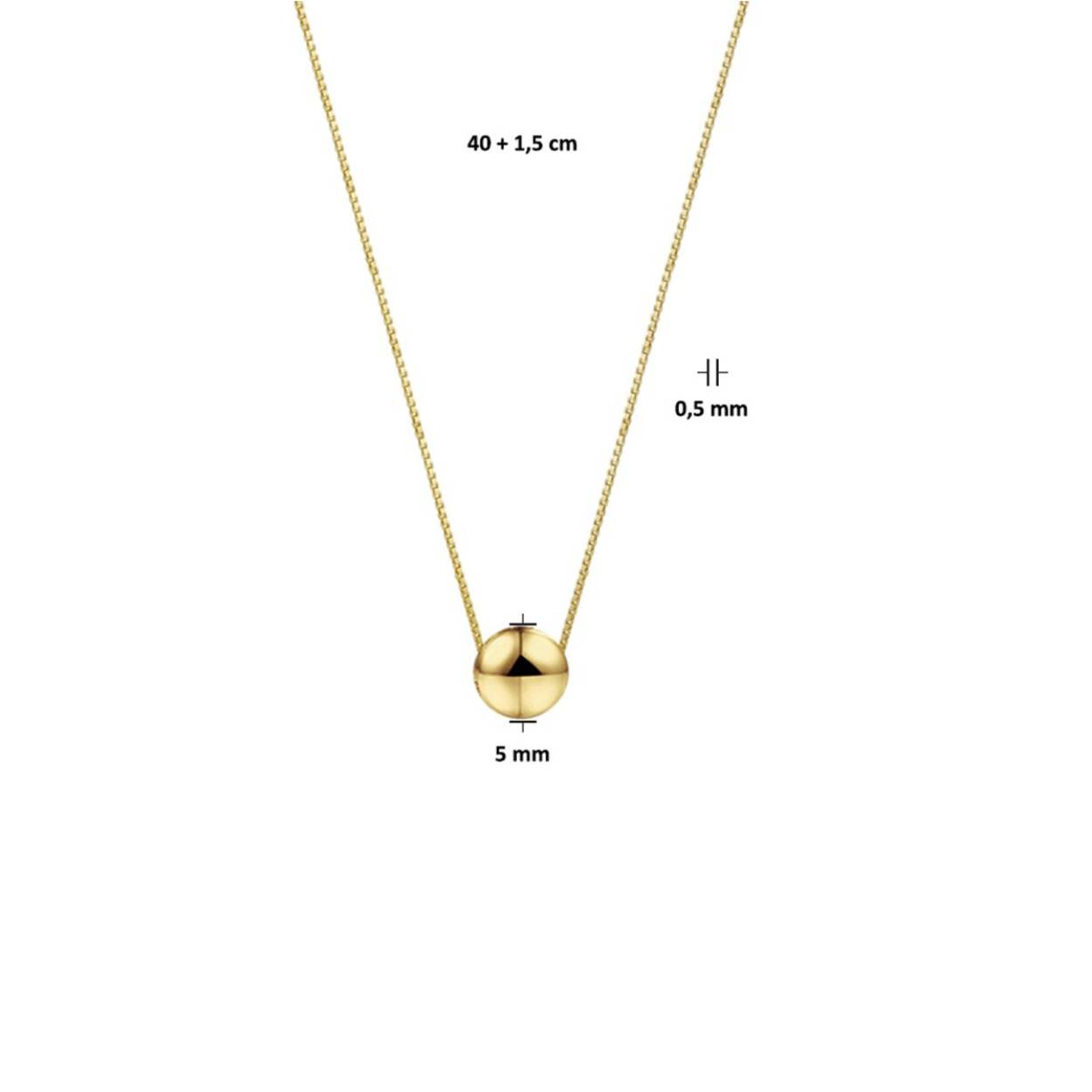 14 Karaat geelgouden collier met een bolletje van 5 mm. De lengte bedraagt 40cm met 1.5cm extensie en de schakelbreedte is 0.5mm.