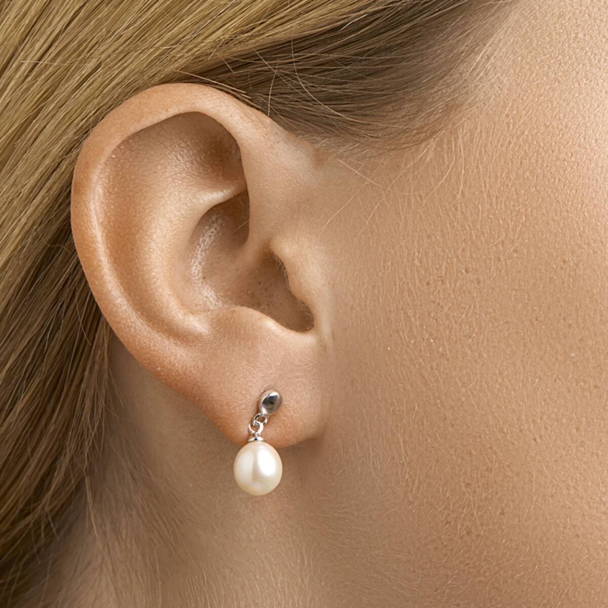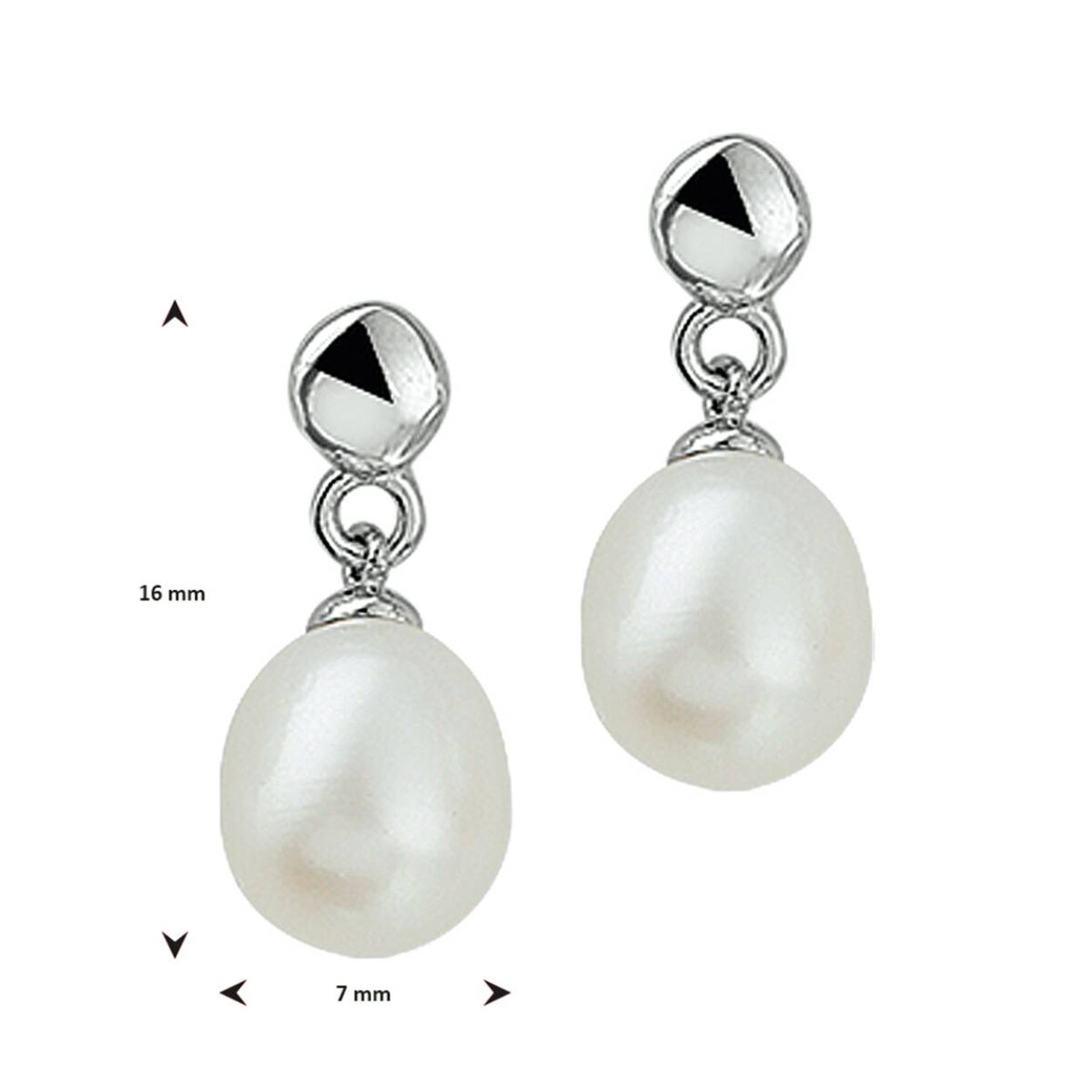 Gerhodineerd 925 zilveren oorhangers uitgevoerd met zoetwaterparel. De oorhangers hebben een totale hoogte van 1.6cm en een breedte van 7mm.