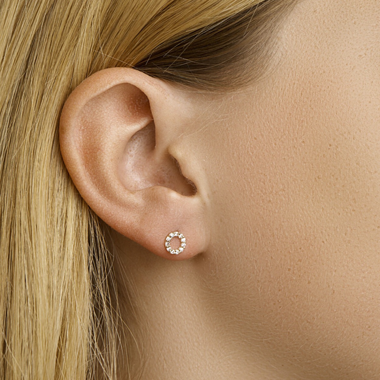 14 Karaat geelgouden oorknoppen in de vorm van een cirkel met zirkonia