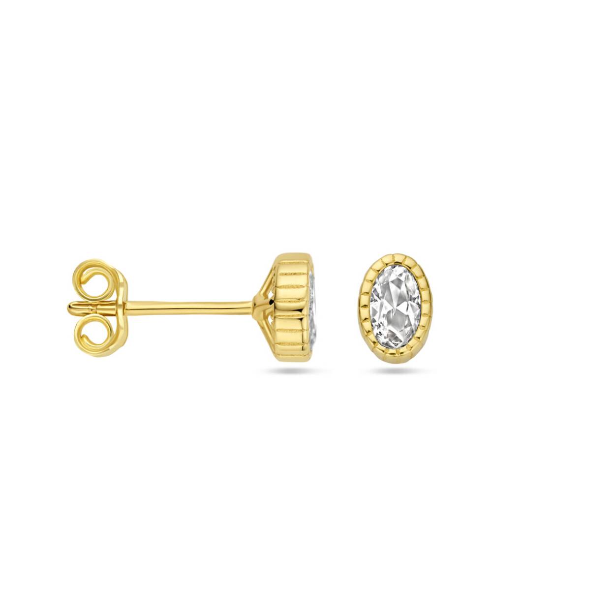 Huiscollectie 14krt geelgouden oorstekers uitgevoerd met zirkonia. De oorknoppen hebben een afmeting van 6x4.5mm.