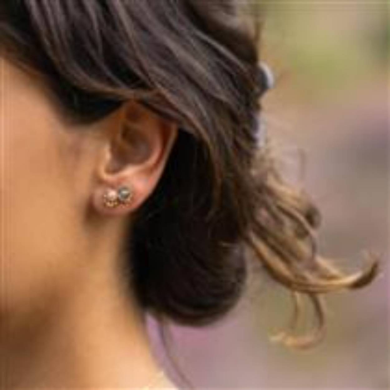 Deze Rabinovich geel goud vergulde oorknoppen bevatten elk een balletje van 5 mm perzik maansteen.