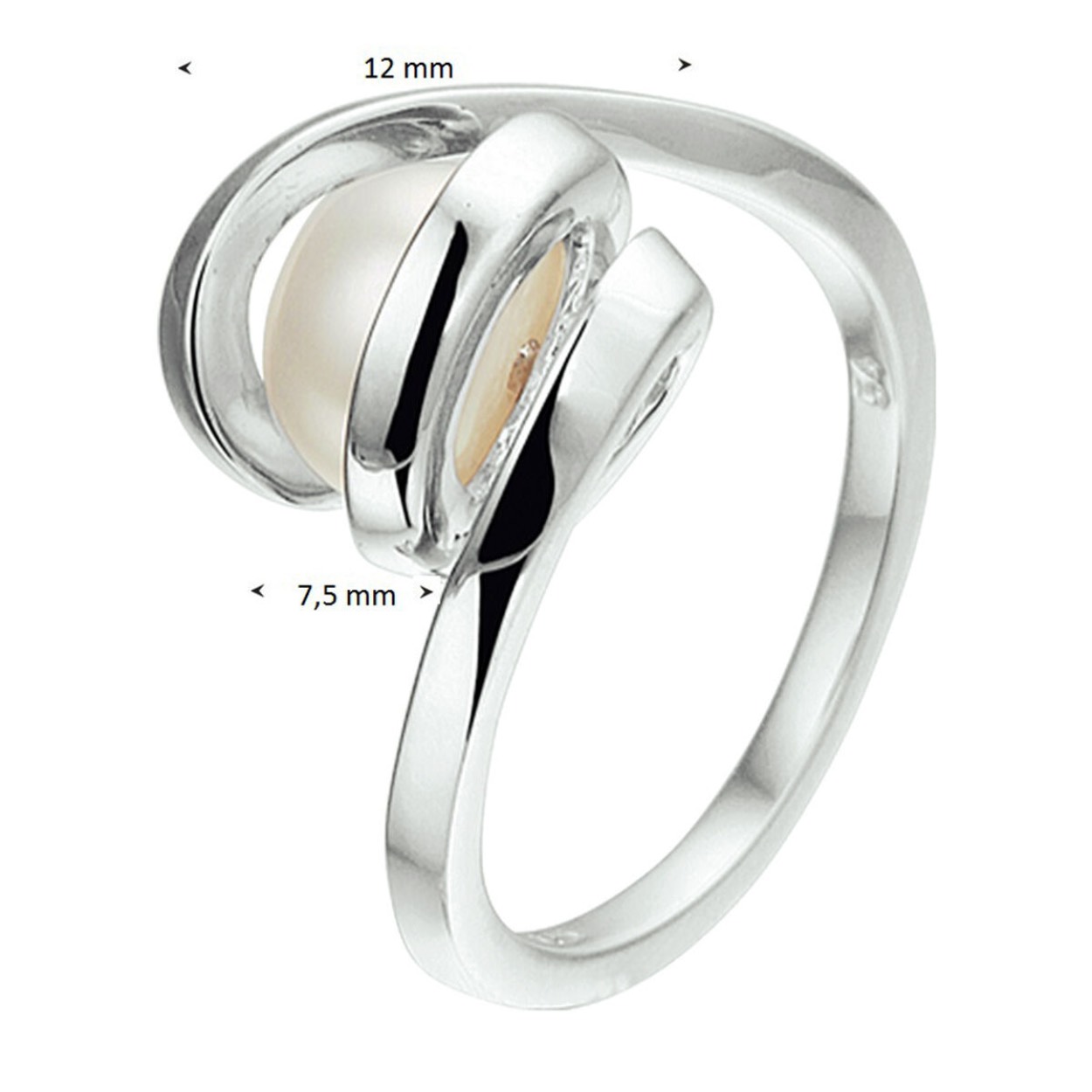 Stijlvol gerhodineerd zilveren 12mm brede ring uitgevoerd met een zoetwaterparel van 7.5mm. De glanzende witte parel in combinatie met het unieke design van de ring maken dit sieraad tot een echte eyecatcher. De ring is te combineren met parel sieraden uit onze collectie. Zo creeer je elke keer weer een nieuwe look!.