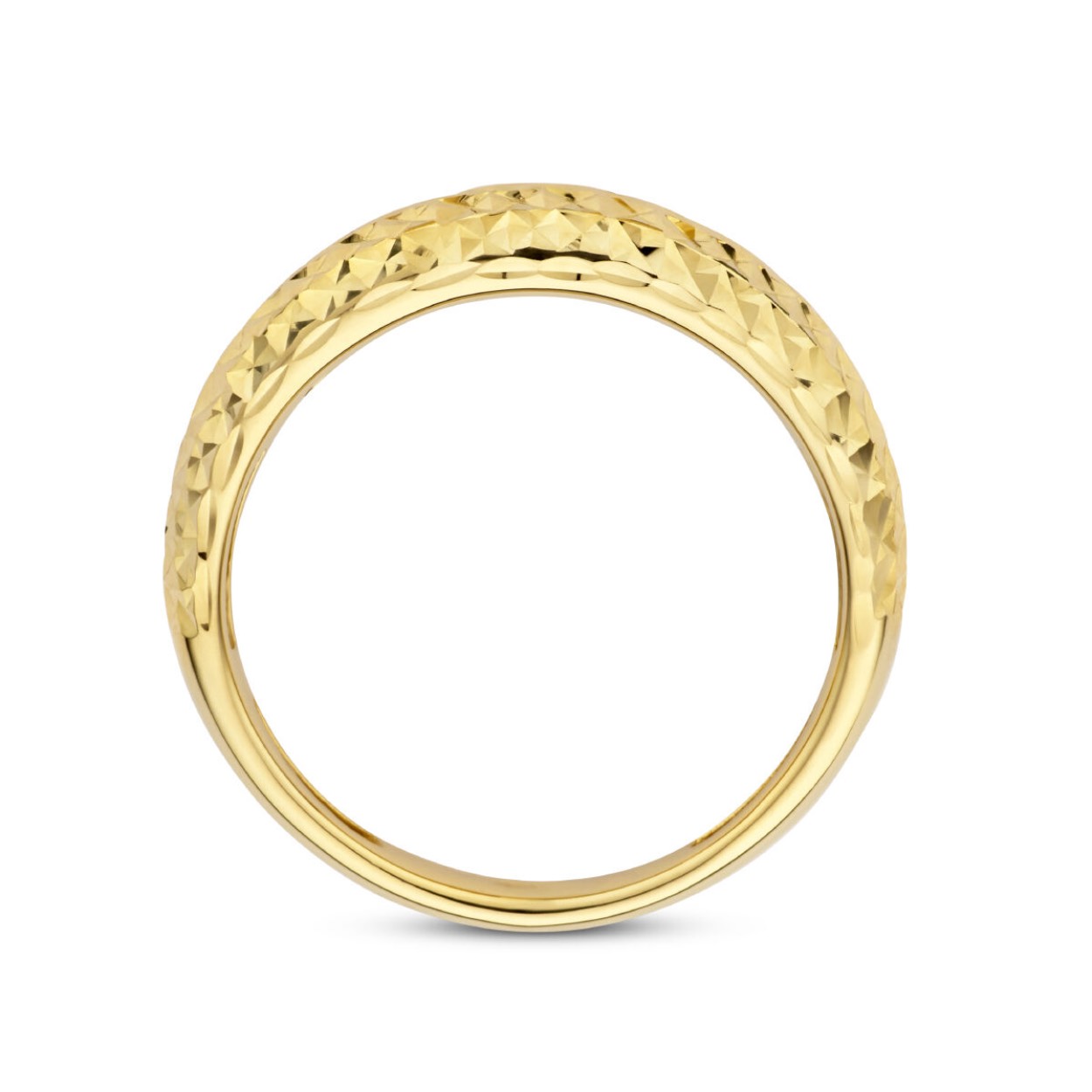 Huiscollectie 14krt geelgouden ring met een gediamanteerde afwerking. De ring heeft een breedte van 4.5mm. De ring voelt comfortabel aan door de opengewerkte bodem.