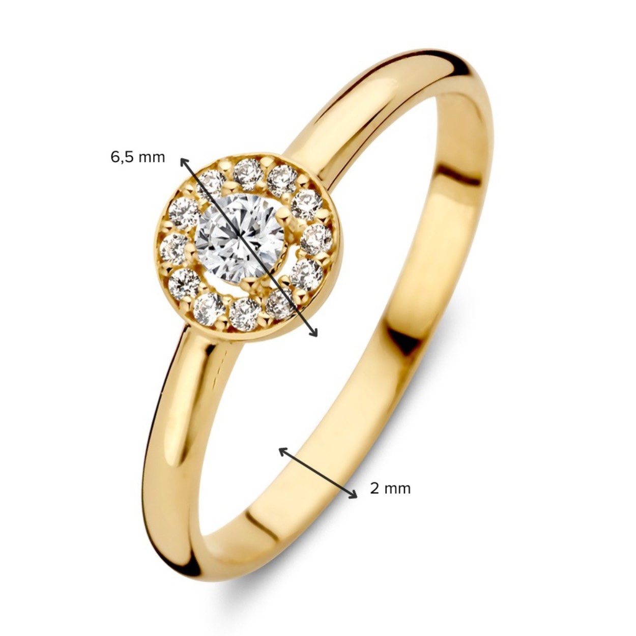 Excellent Jewelry 14krt geelgouden entourage ring met zirkonia's.