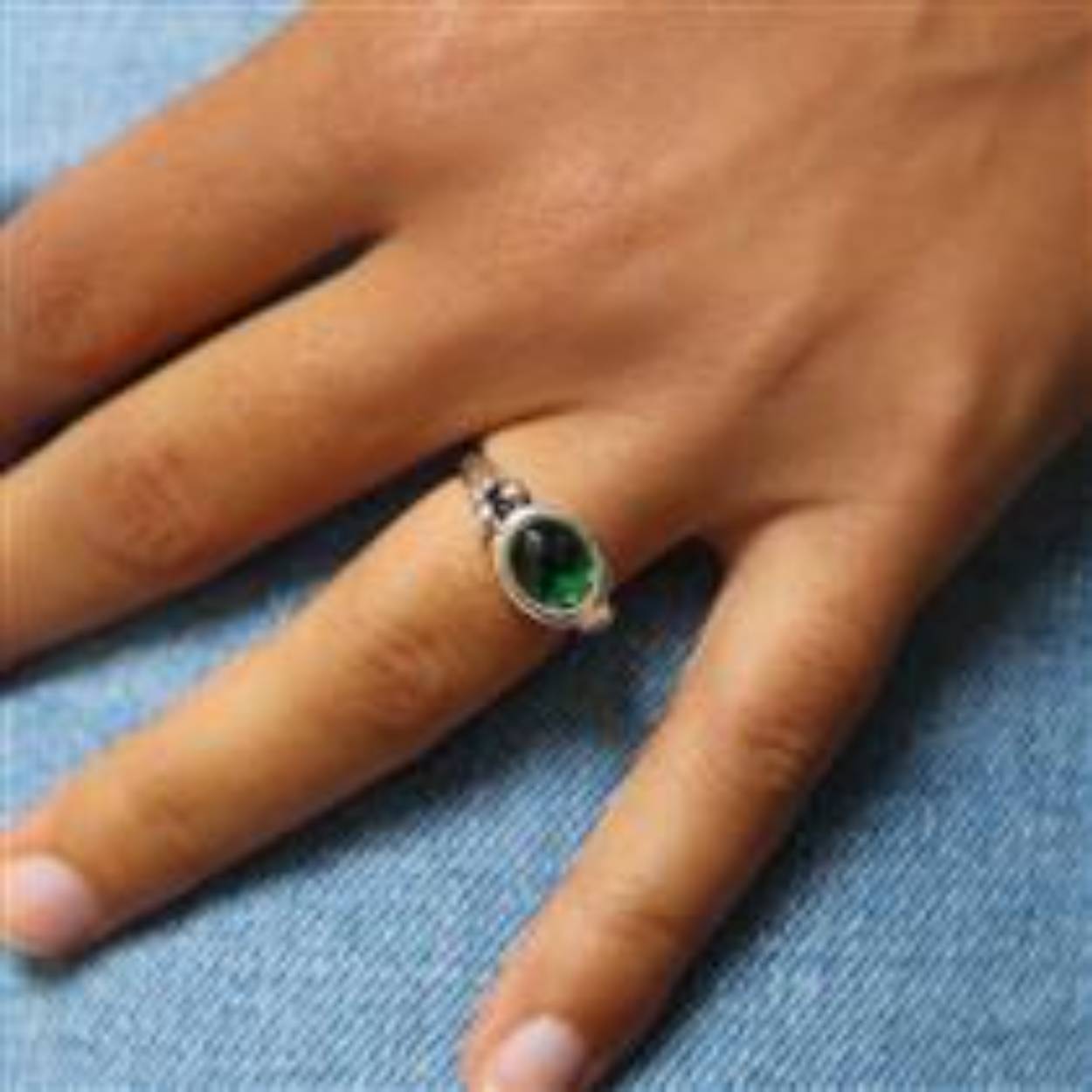 Deze sterling zilveren ring bevat een groene kwarts van 8 x 6 mm. De ringband heeft een mooi klein bloemetje.