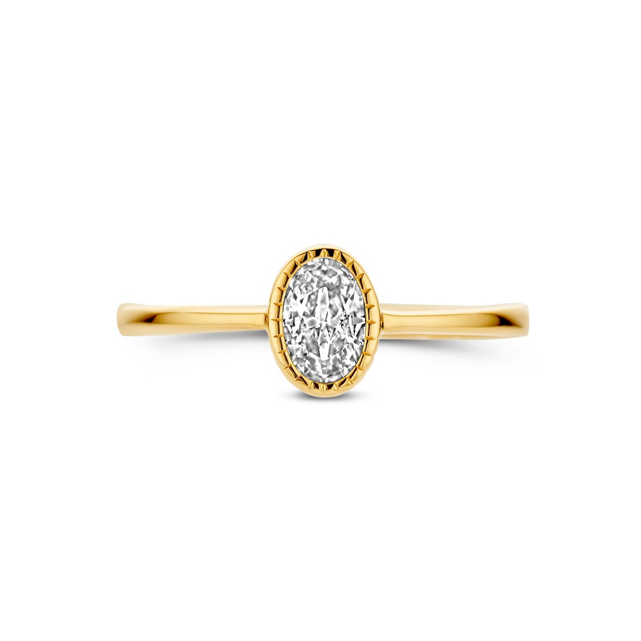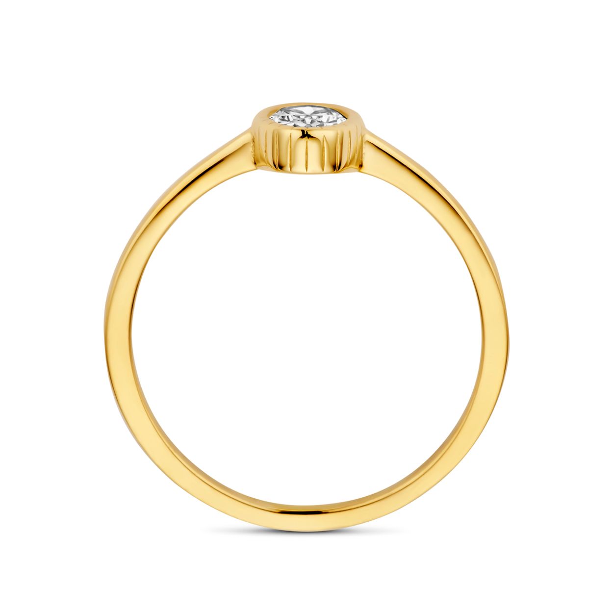 Huiscollectie 14krt geelgouden ring met zirkonia. De ring heeft een breedte van 7mm.