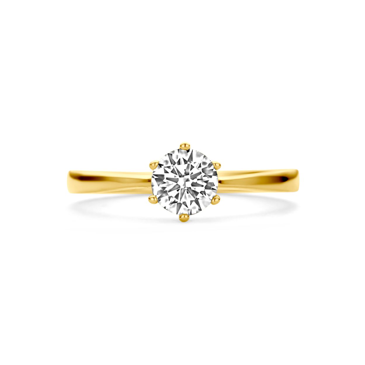 14k Geelgouden ring uitgevoerd met zirkonia. De ring heeft een breedte van 6.5mm.