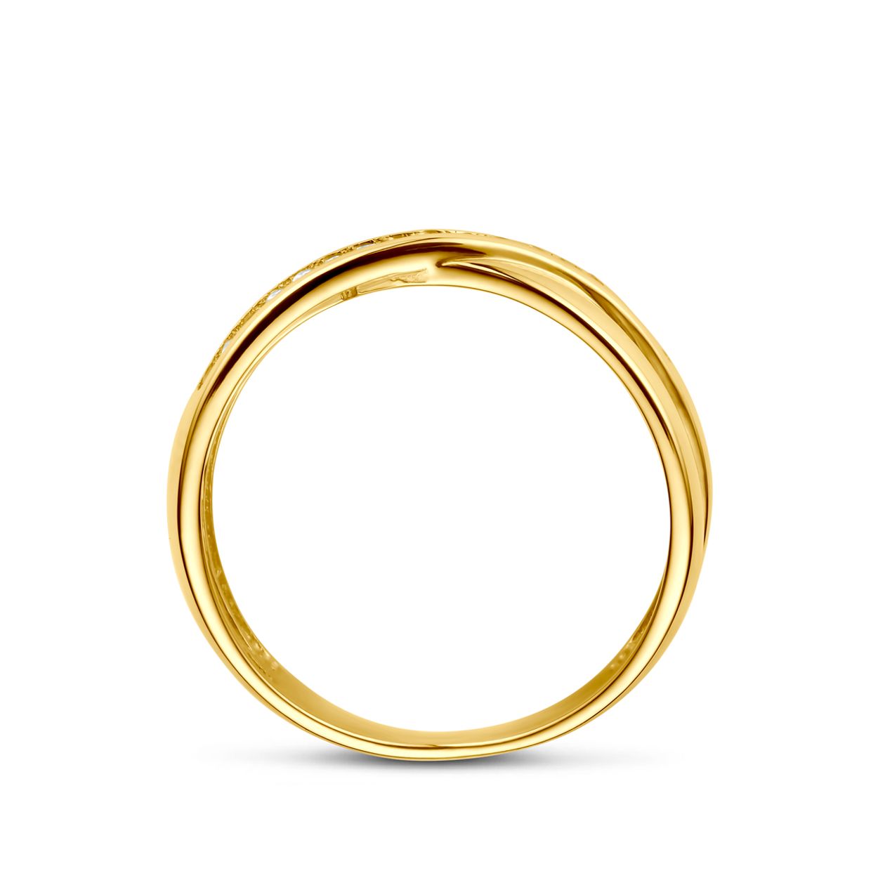 Huiscollectie 14krt geelgouden ring uitgevoerd met zirkonia. De ring heeft een breedte van 5mm.