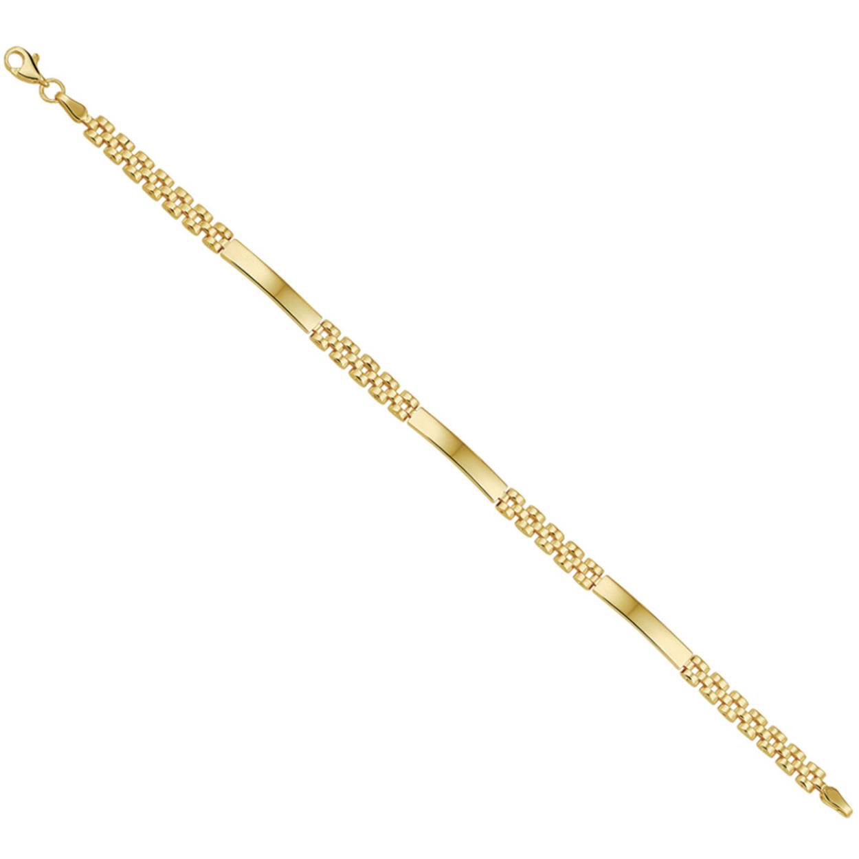 Huiscollectie 14 Karaat geelgouden graveerarmband. De graveerplaat heeft een dikte van 1.6mm. De schakelbreedte is 4.5mm.