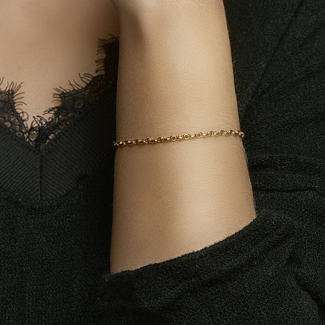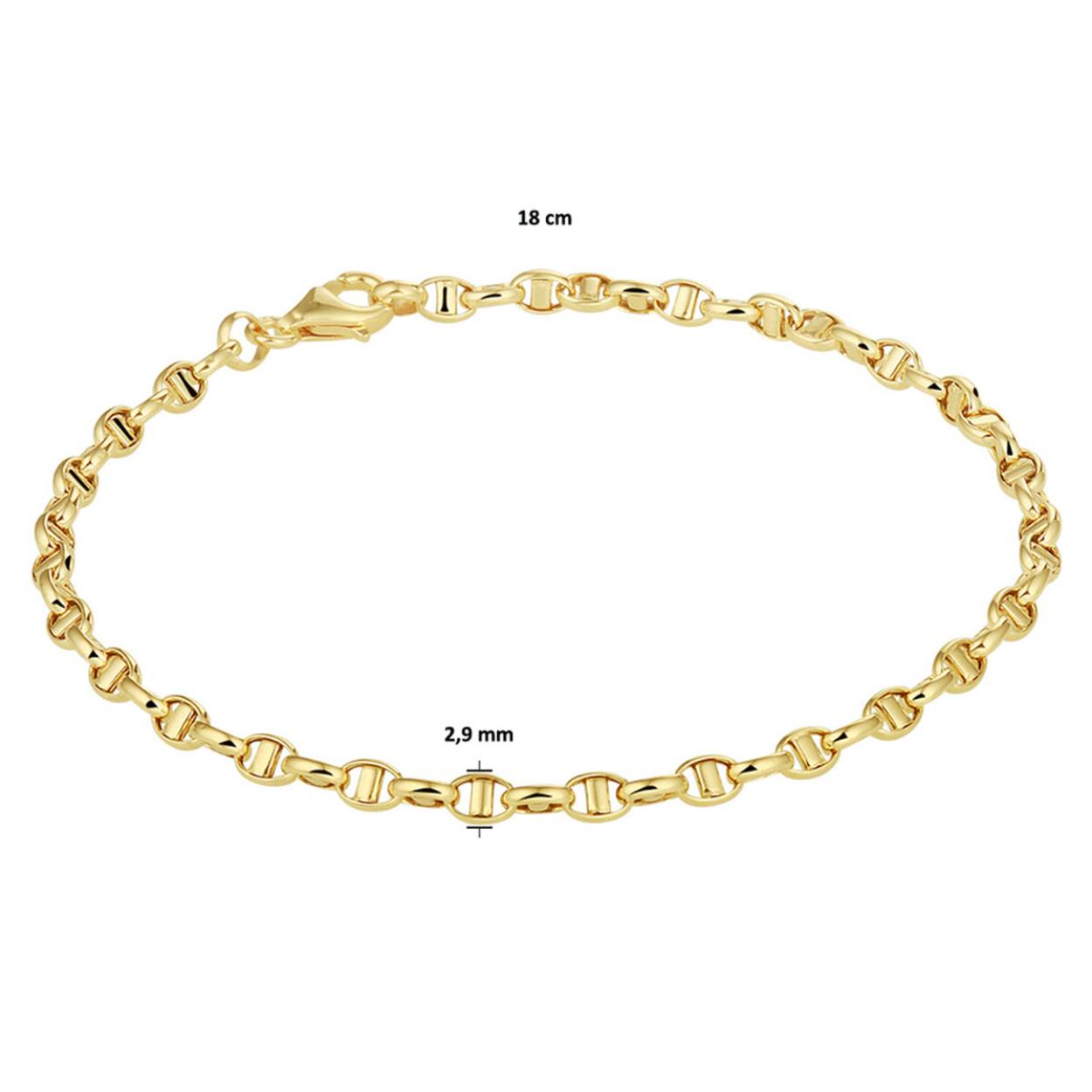 Huiscollectie geelgouden armband met een anker schakel. Een lengte van 19.5cm en 2.9mm breed en met een karabijn sluiting. De armband is te combineren met bijpassend collier uit onze collectie.