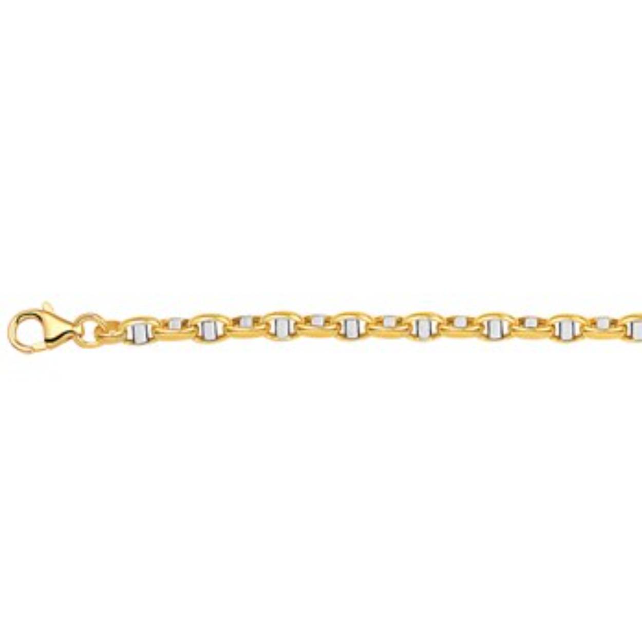 Huiscollectie 14krt bi-color gouden armband  jasseron ovaal met balkje 3,5 mm, lengte 19,5cm