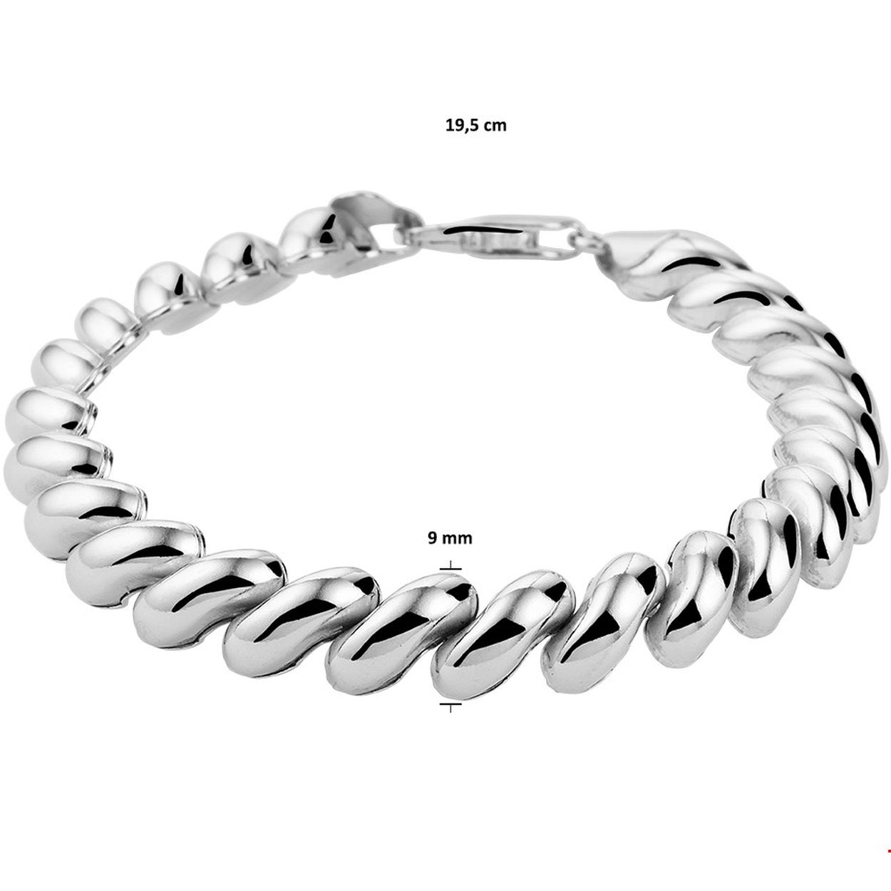 Gerhodineerd zilveren armband met een draaglengte van 19.5cm en een schakelbreedte van 9mm. Uitgevoerd met een stevige karabijn sluiting. Info: Gerhodineerd zilver is door de rhodiumlaag beter bestand tegen verkleuren en krassen.