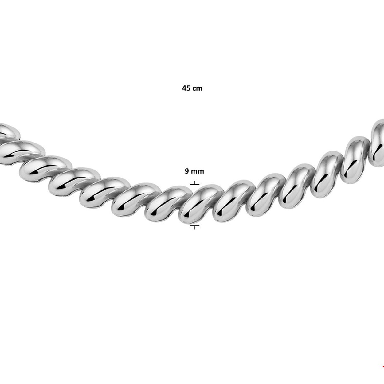 Gerhodineerd zilveren collier met een draaglengte van 45cm en een schakelbreedte van 9mm. UItgevoerd met een stevige karabijn sluiting.