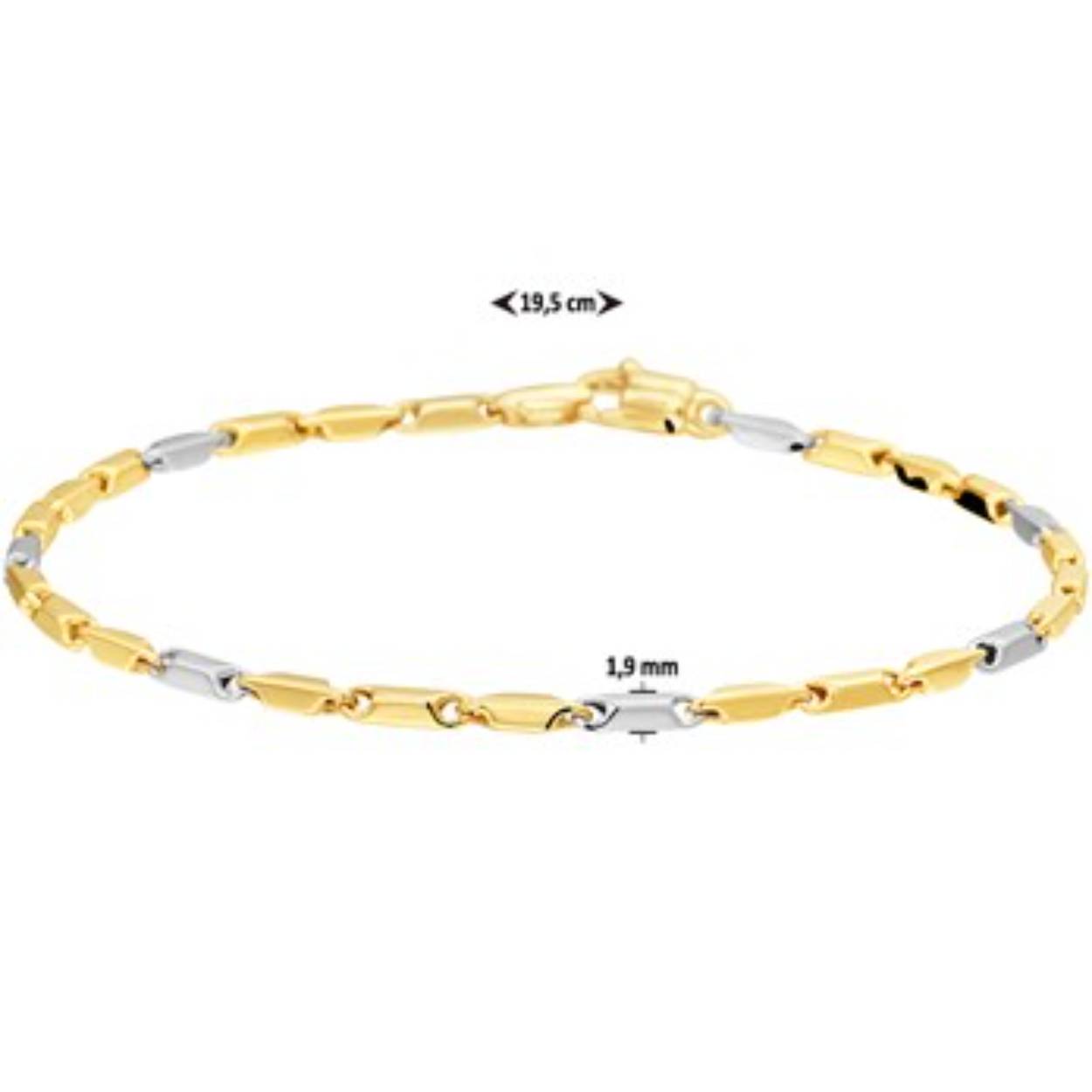 14 Karaat bi-color wit- en geelgouden armband met een lengte van 19.5cm en breedte van 1.9mm. De armband is te combineren met een bijpassend collier uit onze collectie.
