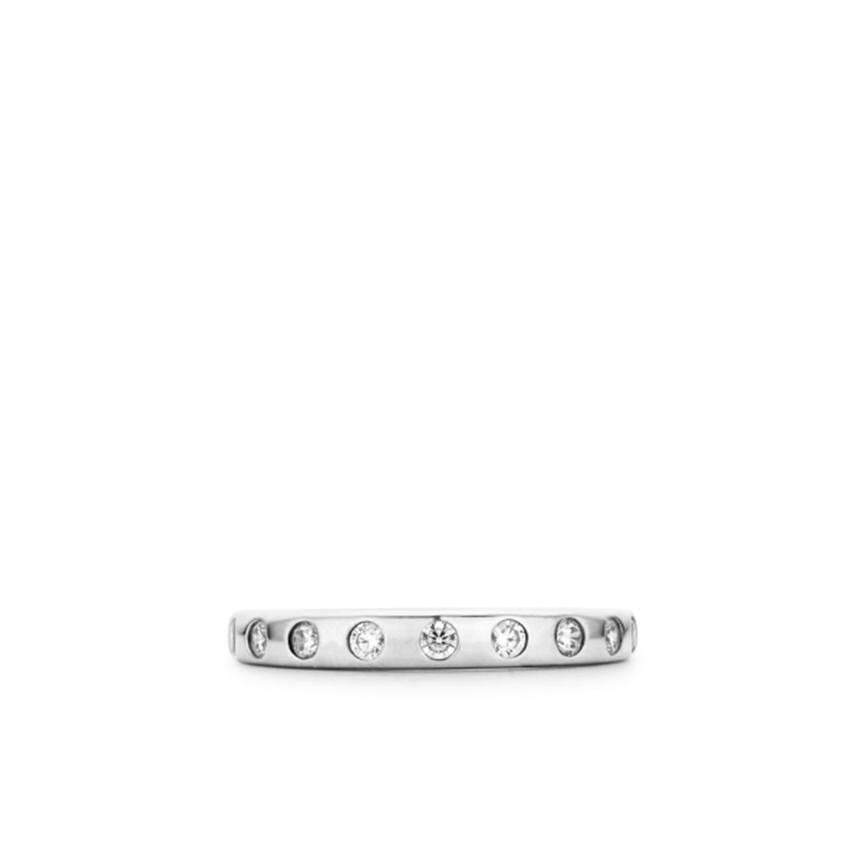 Een klassieke TI SENTO – Milano ring in een nieuw jasje. De zirkonia’s zitten verder uit elkaar wat een stijlvolle look creëert. De zirkonia’s zijn met veel zorg hand gezet in een gladomzetting. De ring is makkelijk te dragen door dat deze goed te combineren is met de TI SENTO – Mix & Match collectie. Daarom is deze zeer geschikt voor everyday wear. De ring is gemaakt van gerhodineerd 925 sterling zilver die voldoet aan de goudsmid standaard.