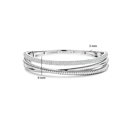 TI SENTO zilveren armband met zirconia, is een elegante armband met sprankelende stenen. Het is een verfijnd sieraad ideaal voor elke gelegenheid. Draag deze bangle stijlvol om de pols, solo of in combinatie met andere sieraden, voor een moderne en verfijnde look.