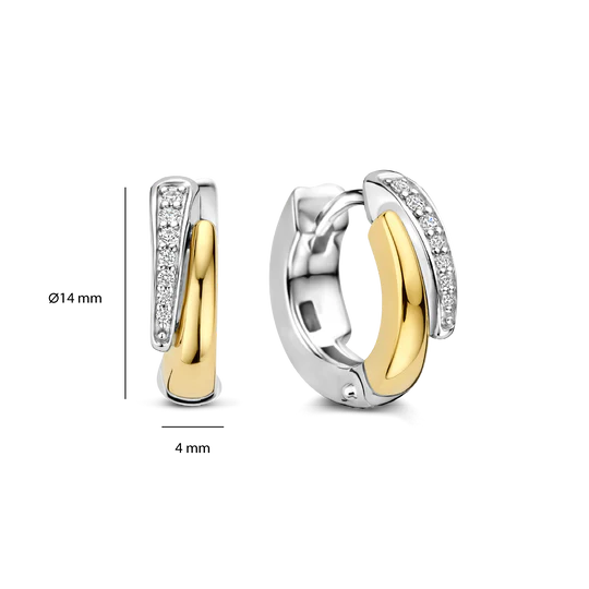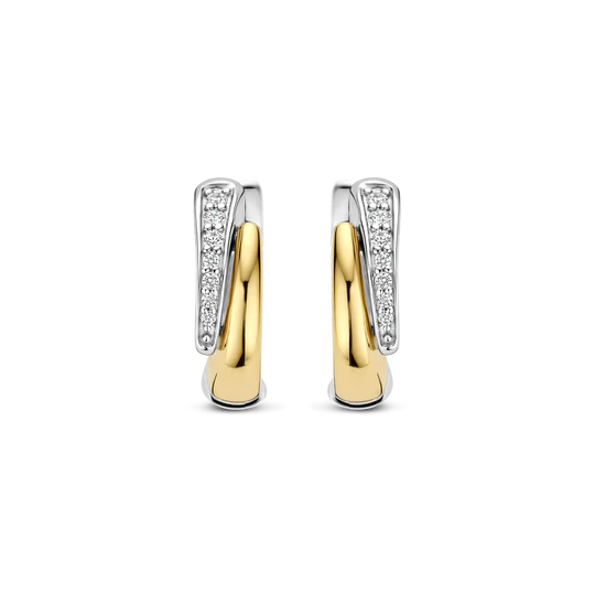 TI SENTO bicolor zilveren oorringen met zirconia,  zijn goud verguld en gemaakt van 925 sterling zilver.  Combineer ze voor een stijlvolle look bij zowel formele als casual outfits. Perfect om elke gelegenheid extra glans te geven.