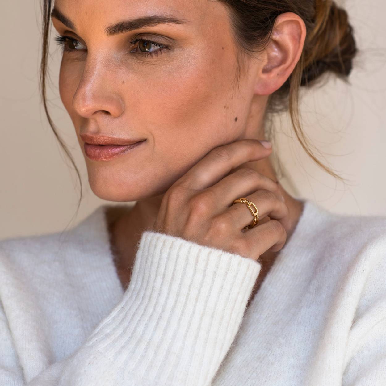 Deze zilveren TI SENTO - Milano chain ring heeft een stroom van vergulde schakels. De geometrie is precies, de stijl absoluut luxueus. Een fijne vintage basic