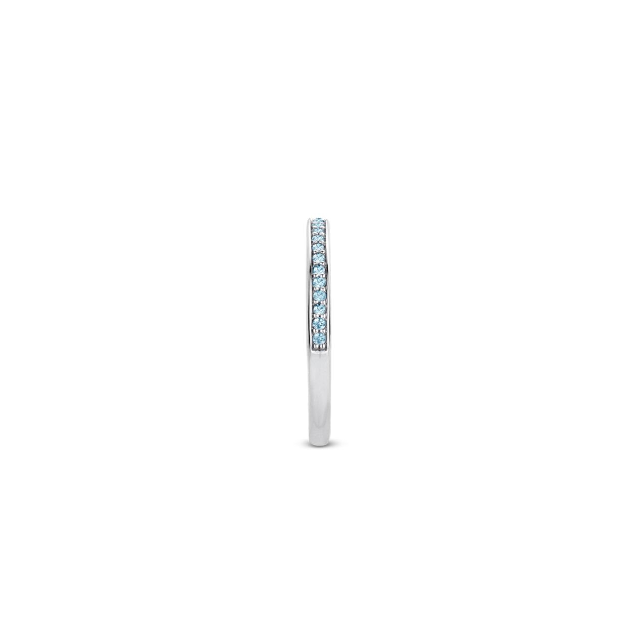 Deze zilveren TI SENTO - Milano ring 1923WB met haar waterblauwe stenen heeft een speels en zomers gevoel. Ze glinstert met het licht. Durf haar te mix en matchen.