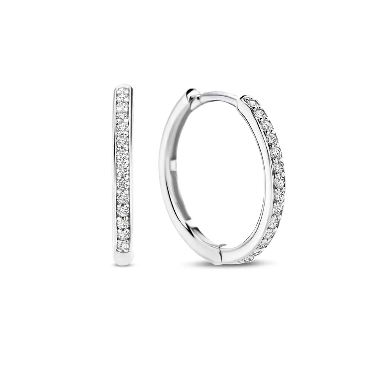 Deze TI SENTO zilveren medium oorbellen 7959ZI versierd met een delicate rand van kleine zirkonia steentjes belichamen de essentie van verfijnde elegantie en modern raffinement. Ontworpen met zorgvuldige aandacht voor detail, zullen deze oorbellen uw nieuwe go-to accessoire worden voor elke gelegenheid. Gemaakt met precisie van premium 925 sterling zilver en bedekt met platina, deze hoepels hebben een delicate 18mm diameter, het aanbieden van een boeiende aanvulling op uw sieraden collectie. De luxueuze platina coating versterkt de schoonheid van deze oorbellen en zorgt ervoor dat ze een statement maken voor elke gelegenheid. Of je ze nu solo draagt of in combinatie met andere oorbellen voor een geraffineerd ensemble, ze zullen zeker een favoriet sieraad in je sieradencollectie worden en een vleugje sprankeling en verfijning toevoegen aan elke outfit. Net als al onze sieraden zijn deze oorbellen nikkelvrij en hypoallergeen, waardoor ze niet alleen stijlvol zijn, maar ook comfortabel en van goede kwaliteit.