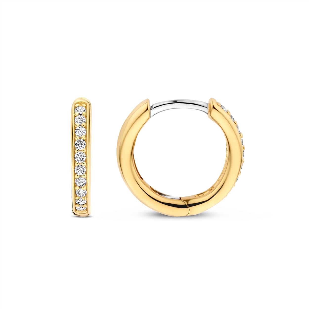 Deze TI SENTO vergulde kleine oorbellen 7812ZY versierd met een oogverblindende parel van kleine zirkonia's, deze prachtige oorbellen zijn ontworpen om een vleugje elegantie en glans toe te voegen aan elke outfit, of je je nu opmaakt voor een speciale gelegenheid of gewoon je alledaagse look verbetert. Gemaakt van premium 925 sterling zilver, zijn deze oorbellen geplateerd met geel goud voor een vleugje uitstraling. Ze hebben een diameter van 14 mm waardoor ze de perfecte luxe basic zijn om toe te voegen aan je oorbellencollectie. Maak een ingetogen statement met deze opvallende oorbellen, draag ze op zichzelf of combineer ze met andere oorbellen om je eigen unieke Ear Party te creëren. Net als al onze sieraden zijn deze oorbellen nikkelvrij en hypoallergeen, waardoor je niet alleen verzekerd bent van stijl, maar ook van comfort en kwaliteit.