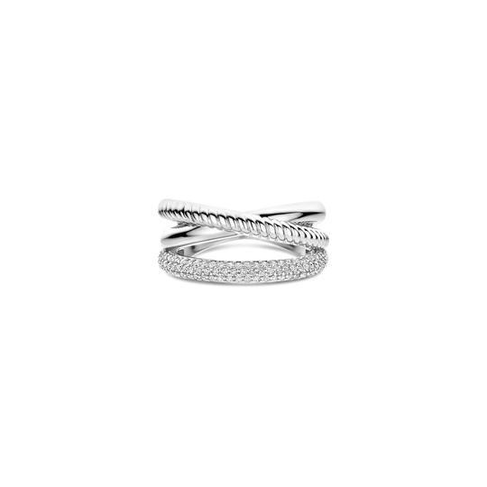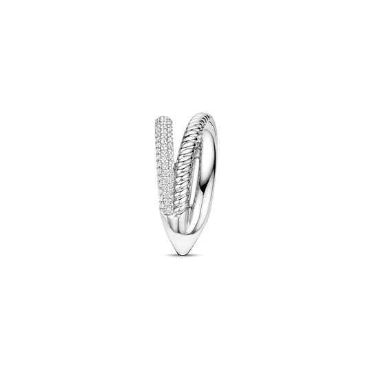 TI SENTO zilveren ring met zirconia,  is vervaardigd uit hoogwaardig 925 sterling zilver. De ring heeft een breedte van 10 mm en een diameter van 17,25 mm. Ideaal voor een verfijnde uitstraling met extra glans. Draag hem speels of gecombineerd met andere sieraden voor een elegante look. Perfect voor elke gelegenheid.