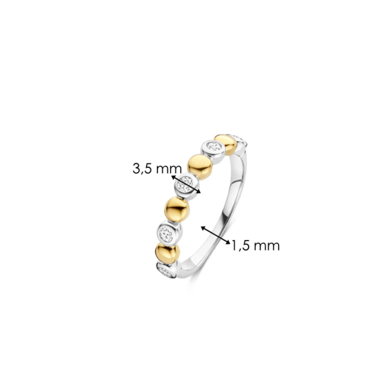 Met deze TI SENTO goudkleurige ring 12365ZY vier je de kunst van contrast. Een moderne klassieker met een stralende twist. Vervaardigd uit hoogwaardig 925 zilver heeft deze ring een opvallende rij bezelgezette zirkonia stenen die afwisselen met gepolijste vergulde bolletjes. Het samenspel van warme goudtinten en fonkelende stenen creëert een verfijnd maar eigentijds ontwerp, perfect om dagelijkse looks te verfraaien of een vleugje glamour toe te voegen aan speciale gelegenheden. De veelzijdige elegantie zorgt ervoor dat het elke outfit versterkt, of het nu casual wordt gecombineerd of met chique avondkleding. Draag de ring alleen voor een verfijnde statement of combineer het met andere TI SENTO sieraden voor een gelaagde, luxueuze stijl. Zorgvuldig vervaardigd voor de gevoelige huid, deze nikkelvrije en hypoallergene ring garandeert langdurig comfort en kwaliteit.