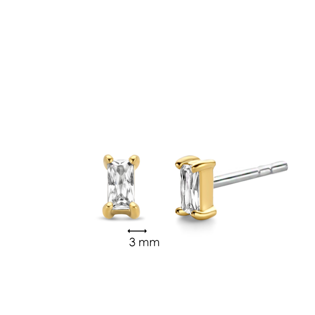 Het pronkstuk van deze TI SENTO - Milano gold-plated zilveren studs zijn de twee baguette-geslepen cubic zirconia stenen, bevestigd in een sierlijke gold-plated prong zetting. Deze luxueuze basic pieces zijn vervaardigd uit 925 sterling zilver. Mix ze met statement oorbellen of andere basics en creëer een stijlvolle ear-party.