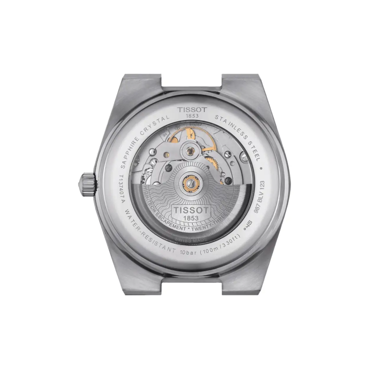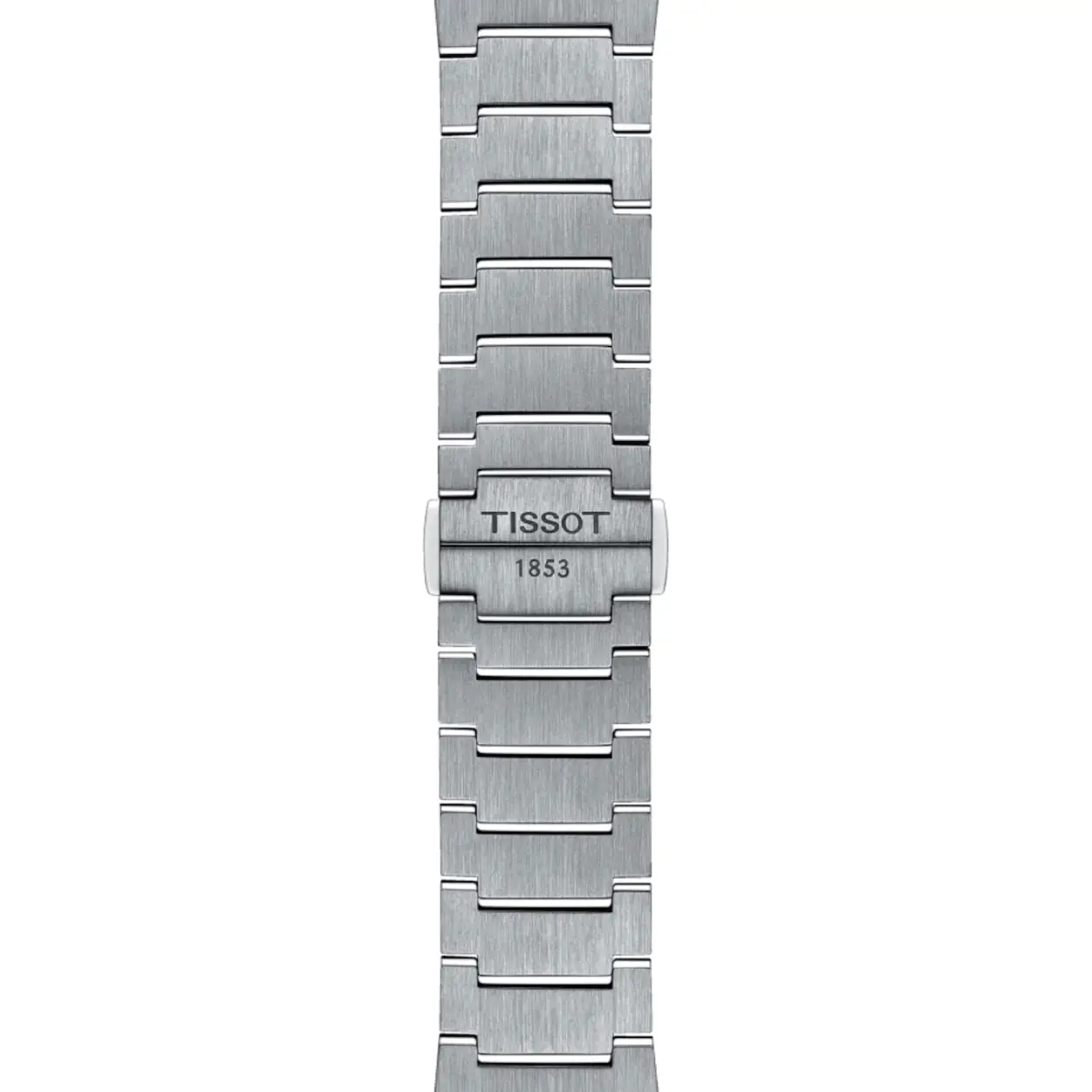 In 1978 creëerde Tissot een quartz-model, dat werd gekenmerkt door een platte, tonneau-vormige kast, smalle indexen en een stalen armband. Een paar jaar later registreerde Tissot de naam PRX. "PR" staat voor "precies" en "robuust". De "X" staat voor het Romeinse cijfer tien en voor de druk van 10 bar, wat overeenkomt met een diepte van 100 meter, tot waar het horloge waterdicht bleef. In 2021 presenteerde Tissot de PRX 40 205, met de nummers onder vermelding van het productnummer dat het horloge destijds droeg. Het is een moderne versie van het vorige model. De 316L roestvrijstalen kast van de Tissot PRX 40 205 heeft een diameter van 40 mm. Het heeft een lichte tonneau-vorm en is versierd met een smalle, ronde ring. Aan de zijkanten wisselen verticaal geborstelde, afgeronde afwerkingen af met gepolijste facetten. De Tissot PRX 40 205 Powermatic 80 is uitgerust met een wijzerplaat met een honingraatmotief in combinatie met vernikkelde indexen en wijzers. Er is ook een variant met roségoudkleurige indexen en wijzers - een kleurencombinatie die ook doet denken aan eind jaren 70. Het meest opvallende kenmerk is de rij grote schakels die de hele breedte in beslag nemen. De flexibiliteit en soepelheid maken het tot een echt succes van ergonomisch ontwerp en zorgen voor een buitengewoon draagcomfort. De gesatineerde afwerking aan de buitenkant is net zo zorgvuldig uitgevoerd als het polijsten van de binnenkant. De wijzers van de PRX 40 205 zijn voorzien van een SuperLumiNova® coating en worden met een zeer kleine tussenruimte op elkaar geplaatst. Hierdoor kan de wijzerplaat dichter bij het horlogeglas worden gebracht. Het optische effect dat door de ontwerpers van Tissot is bereikt, zorgt ervoor dat de kast van het horloge nog platter en slanker lijkt dan het in werkelijkheid is. De Tissot PRX Powermatic 80 heeft een krasbestendig, antireflecterend saffierglas en een achterkant van mineraalglas. Deze versie heeft een blauwe wijzerplaat met indexen en een 316L roestvrijstalen armband met een vlindervouwsluiting met pushers.