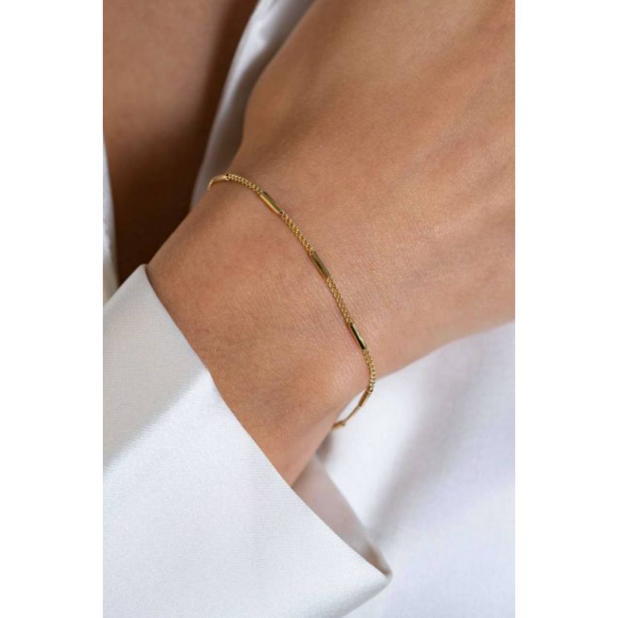 Zinzi zilveren geel vergulde armband met een gourmet schakel, gecombineerd met mooie glanzende staafjes (1,6mm breed). Een tijdloos model en ideaal om te combineren met andere armbanden uit de Zinzi collectie. De lengte is te variëren van 16,5 tot 19,5cm. De armband is vervaardigd van eerste gehalte zilver (925) en voorzien van een extra 14K geel vergulding.