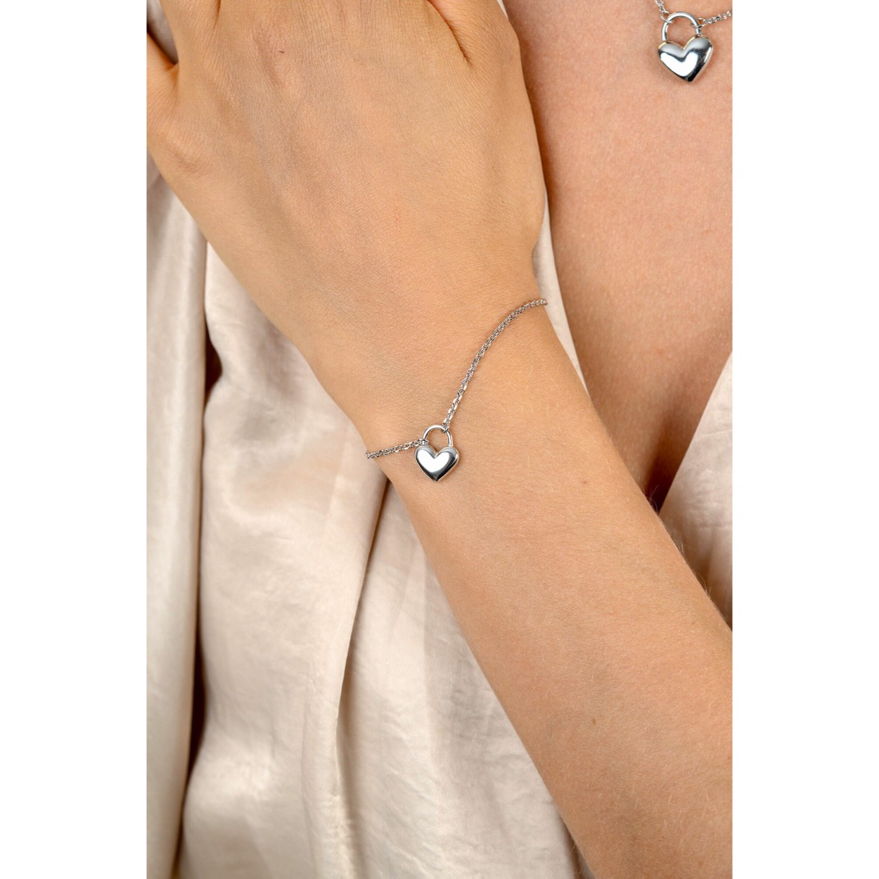 ZINZI zilveren schakelarmband met een hartvormige slot hanger in het midden. Het gladde hart is 13mm breed. Maak je look helemaal compleet met de bijpassende ketting. De lengte van de armband is te variëren tussen de 17cm en 20cm. Vervaardigd van eerste gehalte zilver (925) en voorzien van een extra rodiumlaag voor een langdurige glans.