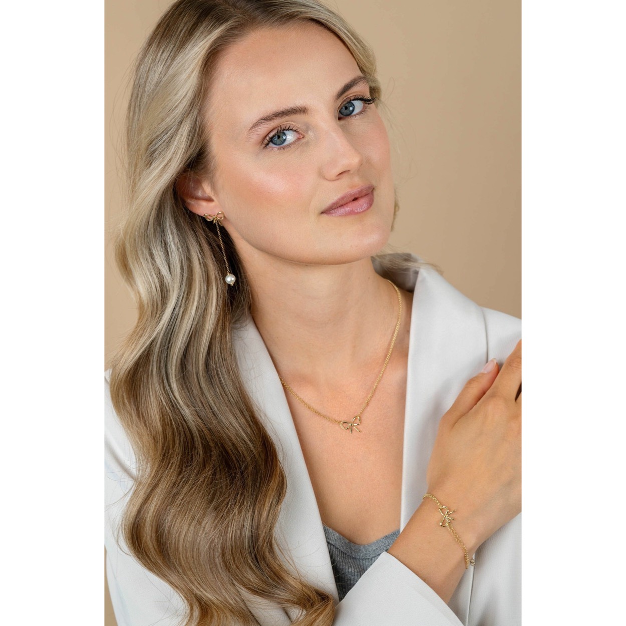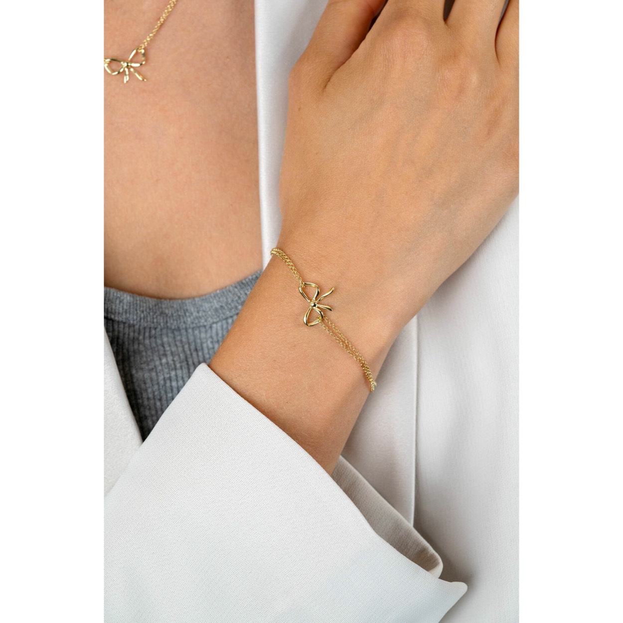 ZINZI gold plated zilveren multi-look armband met opvallende strik. De lengte van de armband is te variëren tussen de 17cm en 20cm. Vervaardigd van eerste gehalte zilver (925) en extra geel verguld.