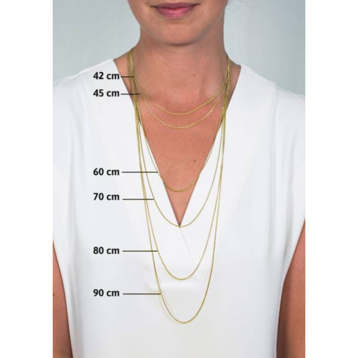 ZINZI zilveren bolletjes ketting 45cm (1mm breed) in geel verguld. Ideaal om je hanger aan te hangen. Kies zelf de lengte die bij je past: keuze uit 42cm, 45cm, 60cm, 70cm, 80cm en 90cm. Iedere ketting heeft een extra verlengstukje van 3 cm, zodat ook hiermee de lengte iets te variëren is. De verschillende lengte-kettingen zijn gemakkelijk met elkaar te combineren om je hals. Met herkenbaar Zinzi hartje bij de sluiting. Vervaardigd van eerste gehalte zilver (925) en extra geel verguld.
