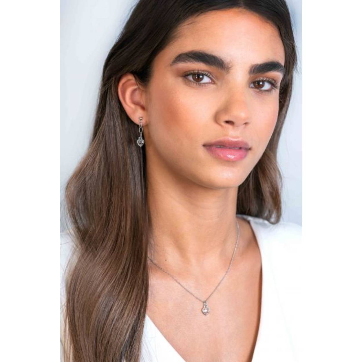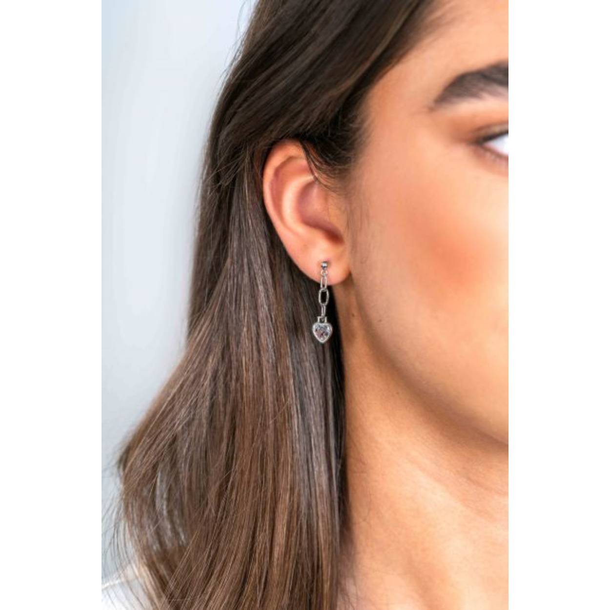 ZINZI zilveren oorstekers 27mm met drie paperclip schakels, waaraan een hart hangt bezet met een witte zirconia ZIO2303. Sierlijke oorhangers voor ieder oor. Vervaardigd van eerste gehalte zilver (925) en voorzien van een extra rodiumlaag voor een langdurige glans.