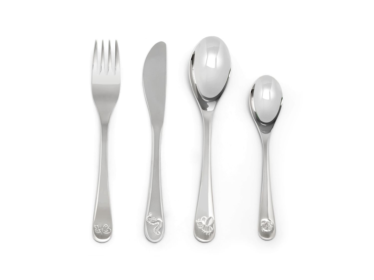 Eten wordt nog leuker met dit Zilverstad kindercouvert met natuurvriendjes. Het bijtje, lieveheersbeestje, rupsje en vlindertje zorgen voor een feestje aan tafel. Het 4-delige bestekje is vervaardigd uit 18/10 RVS en kan in de vaatwasser. De bestekonderdelen zijn geschikt om te worden gegraveerd. Gegraveerde artikel kunnen niet worden geruild. Leuk als kraam- of verjaardagscadeau. De bestekset wordt geleverd in een bijpassende geschenkverpakking.