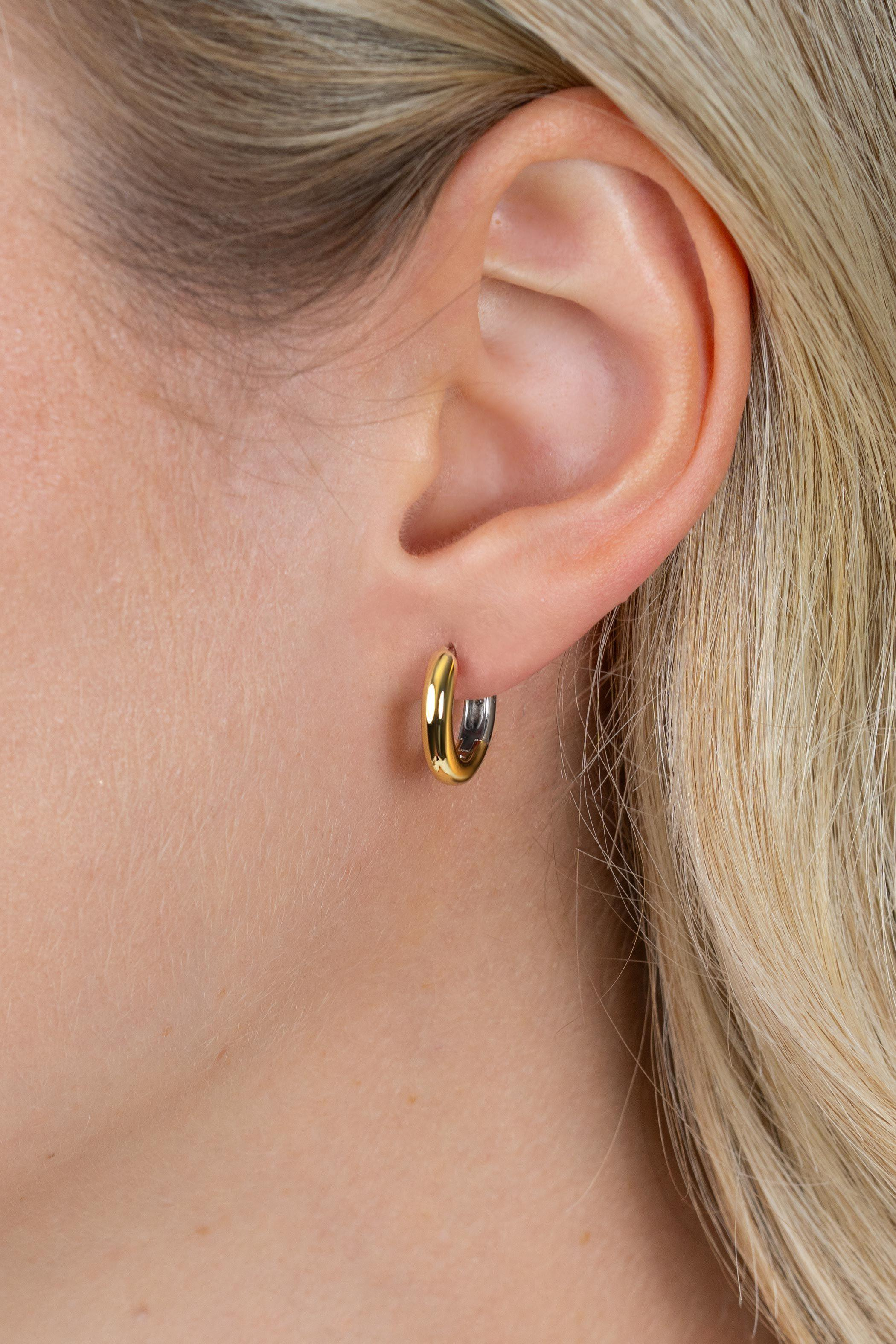 Zinzi  bicolor zilveren gladde oorringen (15mm) met 3mm buisdikte, aan twee zijden te dragen. Met luxe en gemakkelijke klapsluiting. De oorringen zijn vervaardigd van eerste gehalte zilver (925) en voorzien van een rodiumlaag en extra geel verguld.