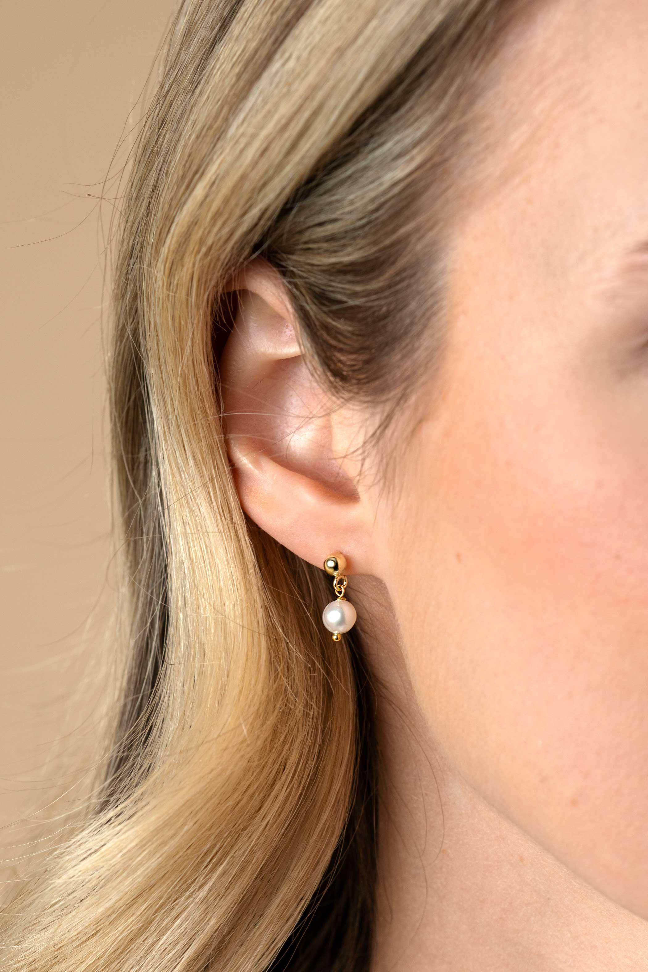 ZINZI gold plated zilveren oorstekers 15mm met bungelend witte zoetwaterparel in organische vorm. Vervaardigd van eerste gehalte zilver (925) en extra geel verguld.