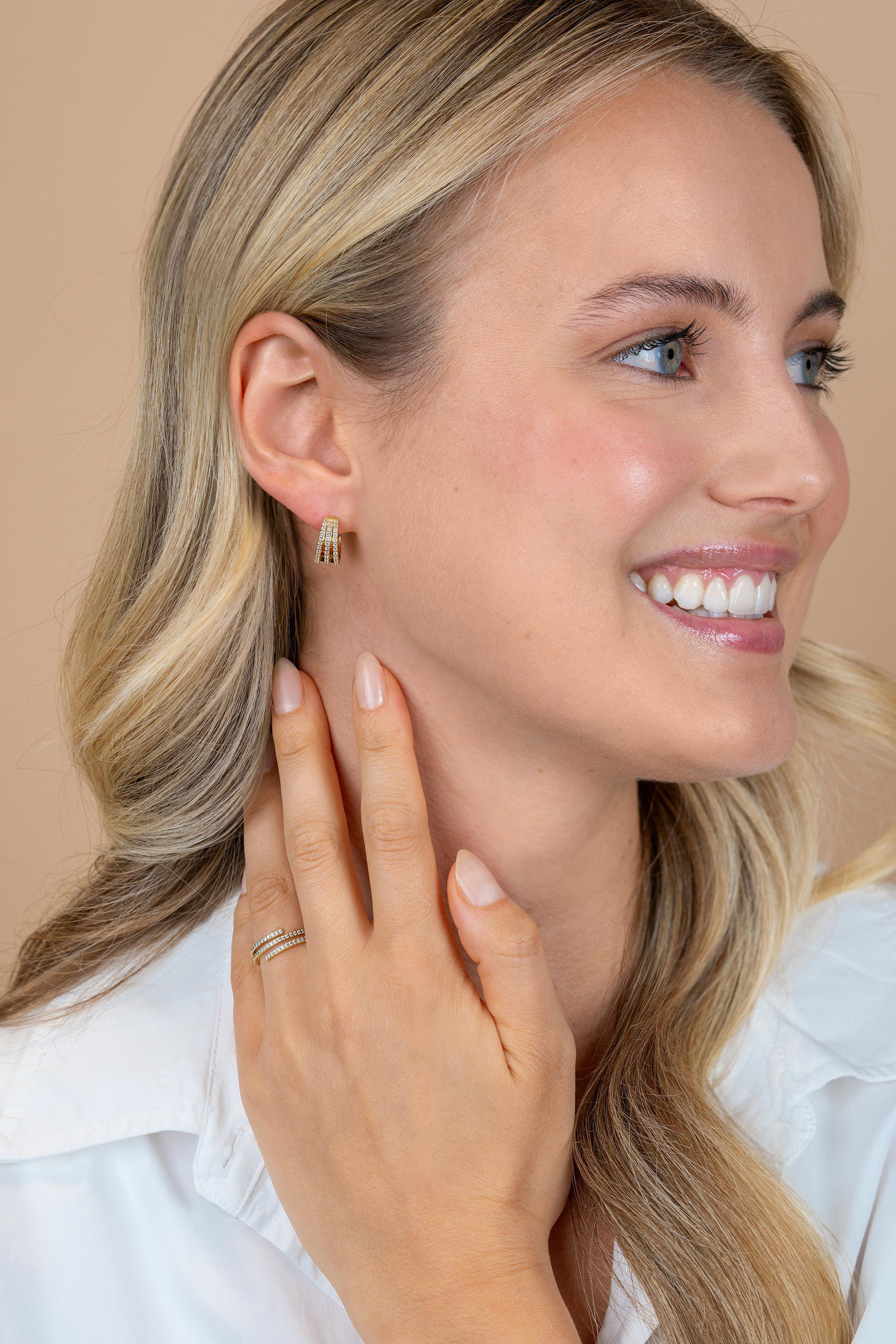 Zinzi goldplated zilveren multi-look oorringen (13 x 6mm), bezet met witte zirkonia's. De oorringen hebben een luxe scharniersluiting. Vervaardigd van eerste gehalte zilver (925) en extra geel verguld.