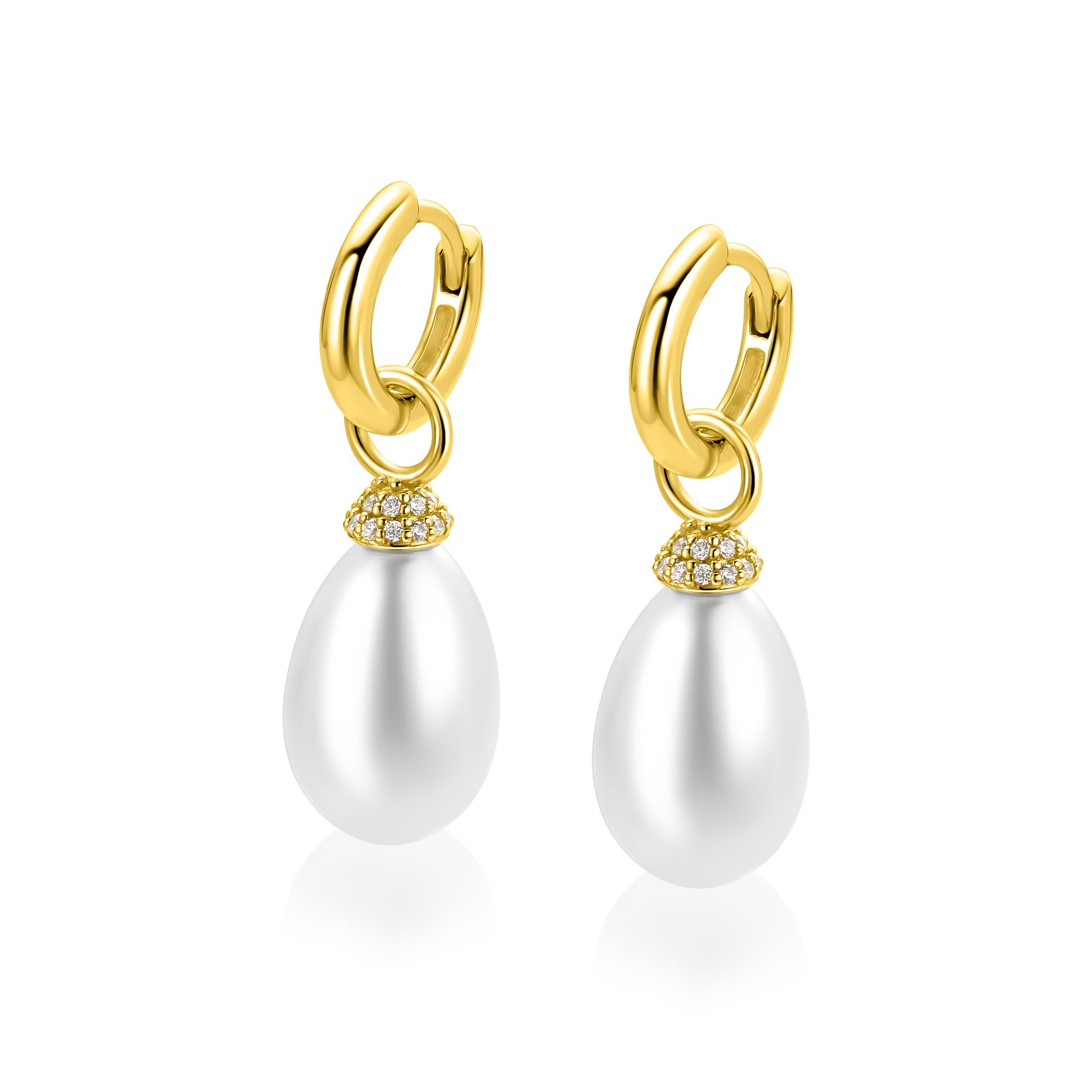 Zinzi goldplated zilveren oorbedels met ovaalvormige witte parel (18mm) en pavé gezette top met witte zirkonia’s. De oorbedels zijn vervaardigd van eerste gehalte zilver (925) en extra geel verguld.