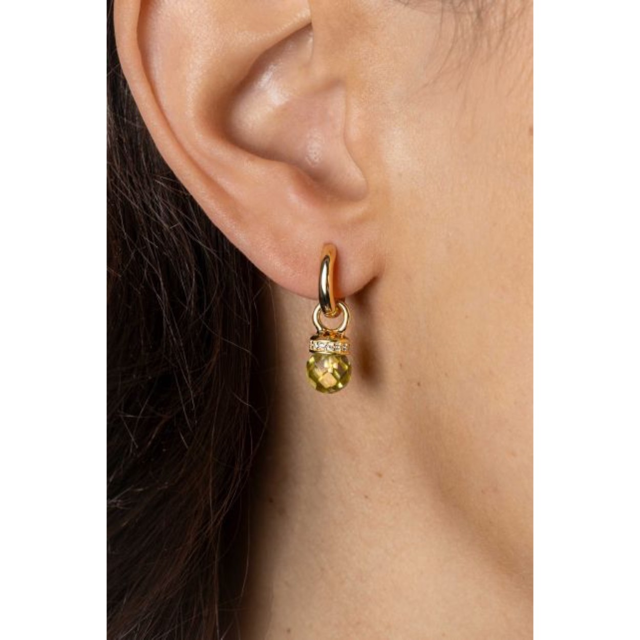 ZINZI gold plated zilveren oorbedels met ronde groen peridot kleurstenen en bezet met witte zirconia's ZICH242