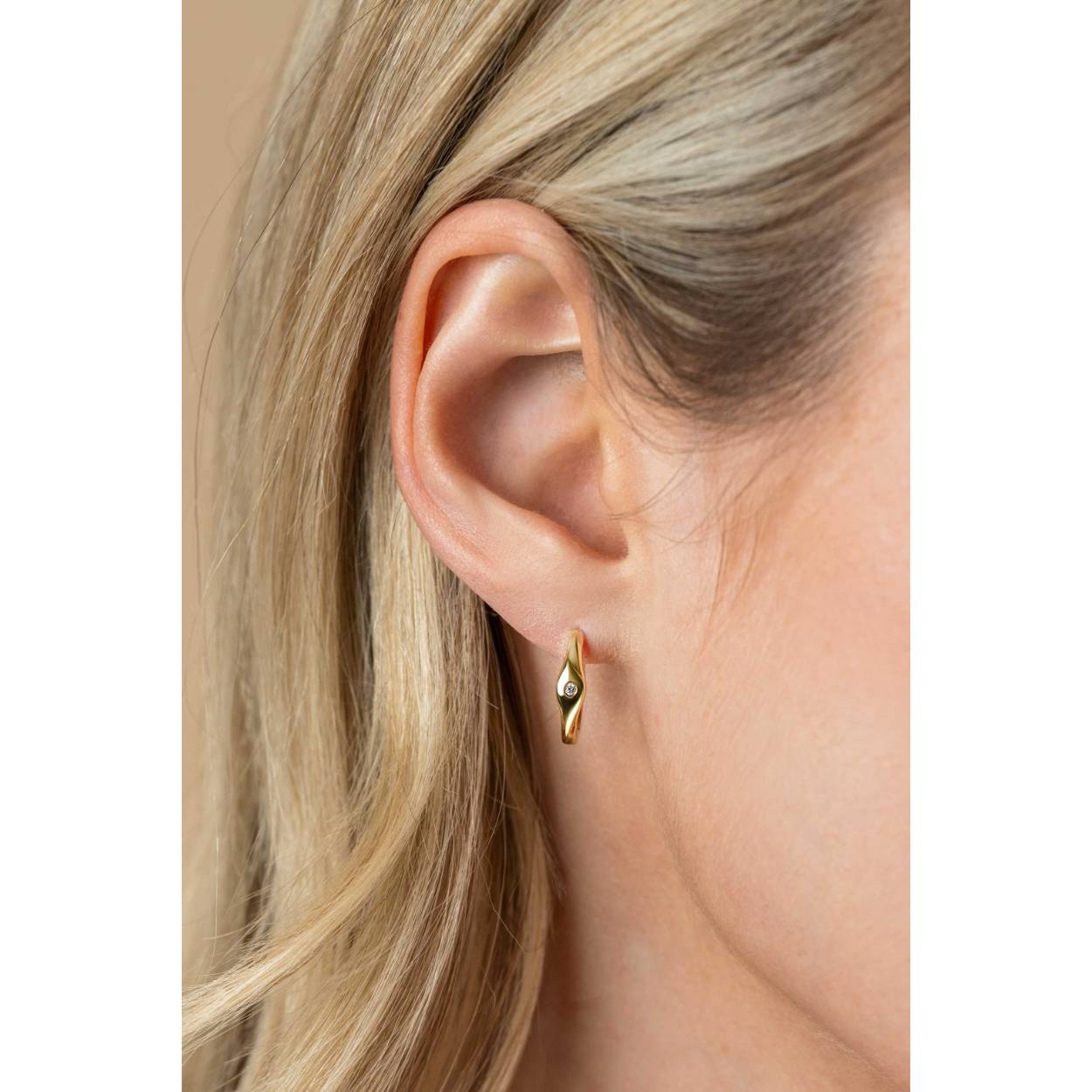 ZINZI gold plated zilveren oorringen (15mm) organisch gevormd met witte zirconia. Met luxe en gemakkelijke klapsluiting. Maak je look compleet met de bijpassende ring! Vervaardigd van eerste gehalte zilver (925) en extra geel verguld.