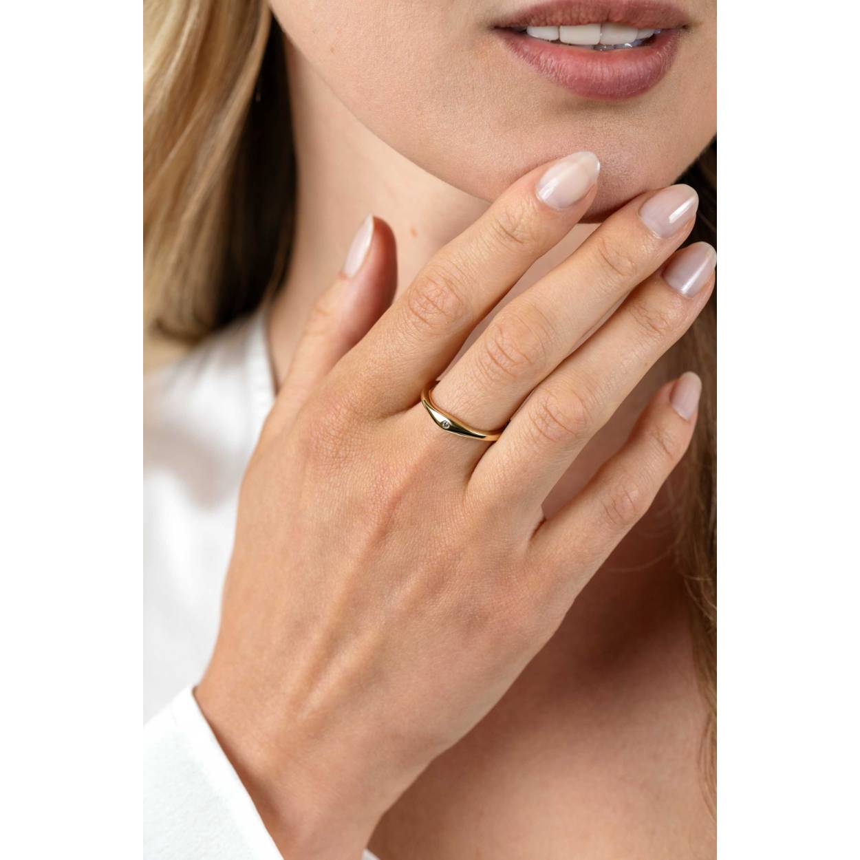 ZINZI gold plated zilveren ring organisch gevormd 3,5mm breed, bezet met een ronde witte zirconia. Maak je look compleet met de bijpassende oorringen! Vervaardigd van eerste gehalte zilver (925) en extra geel verguld.